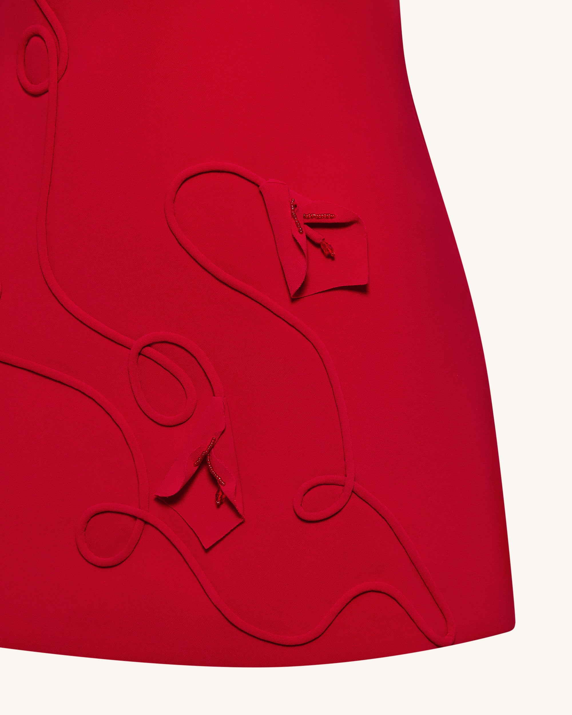 3D Floral-Appliqué Sheath Mini Dress - Red