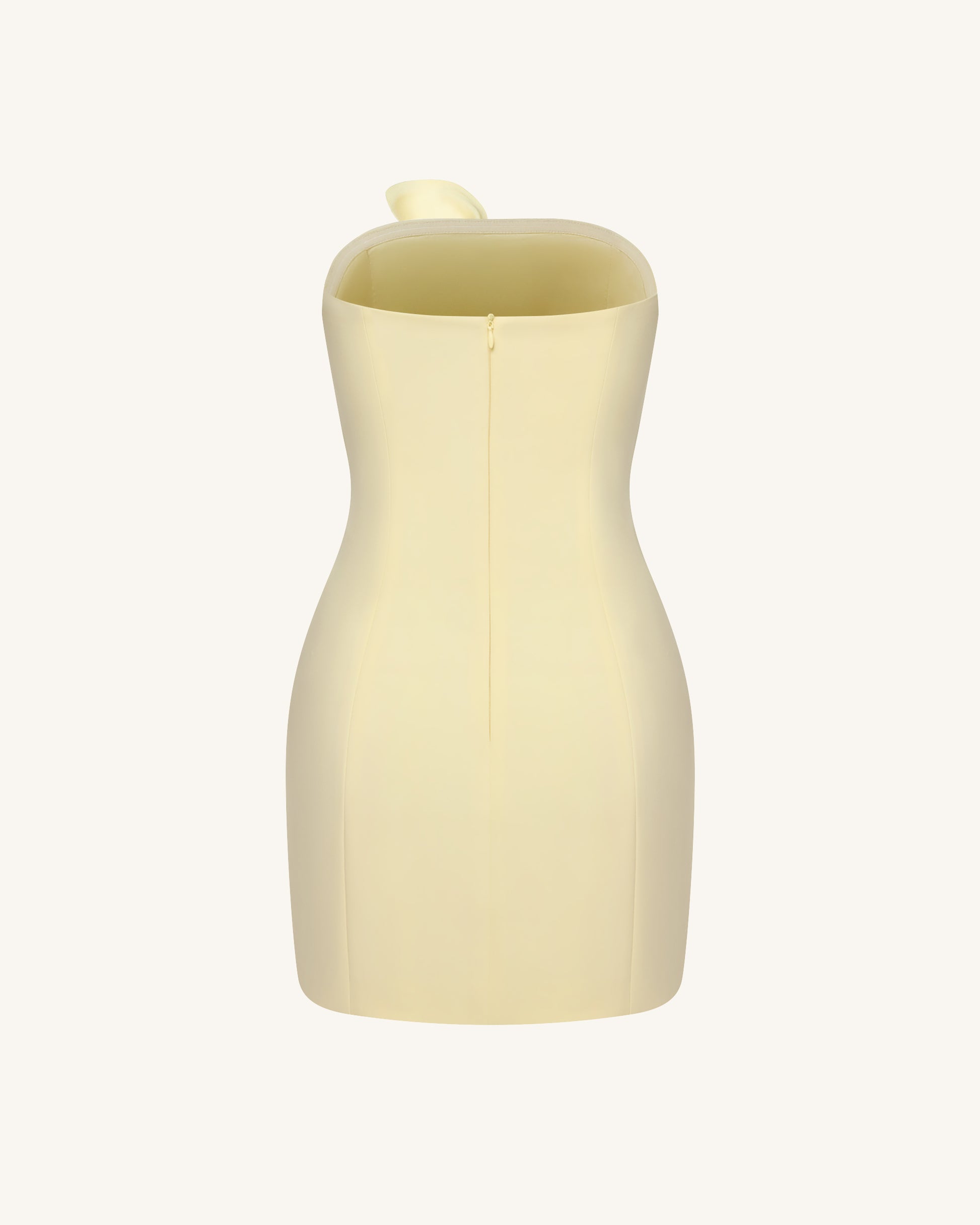 3D Floral Appliqué Strapless Mini Dress - Yellow