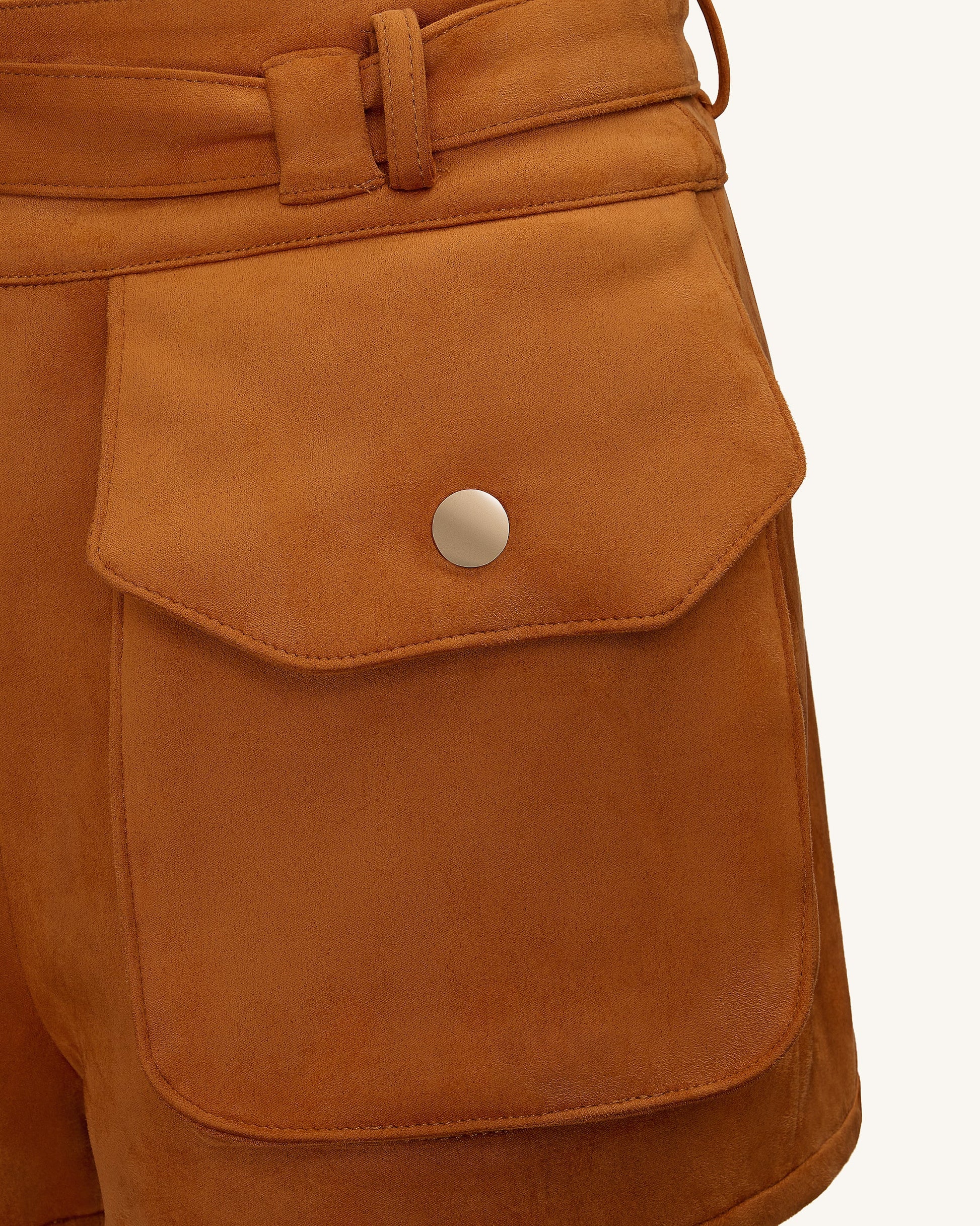 Abigail High-Waisted Utility Shorts - Brown