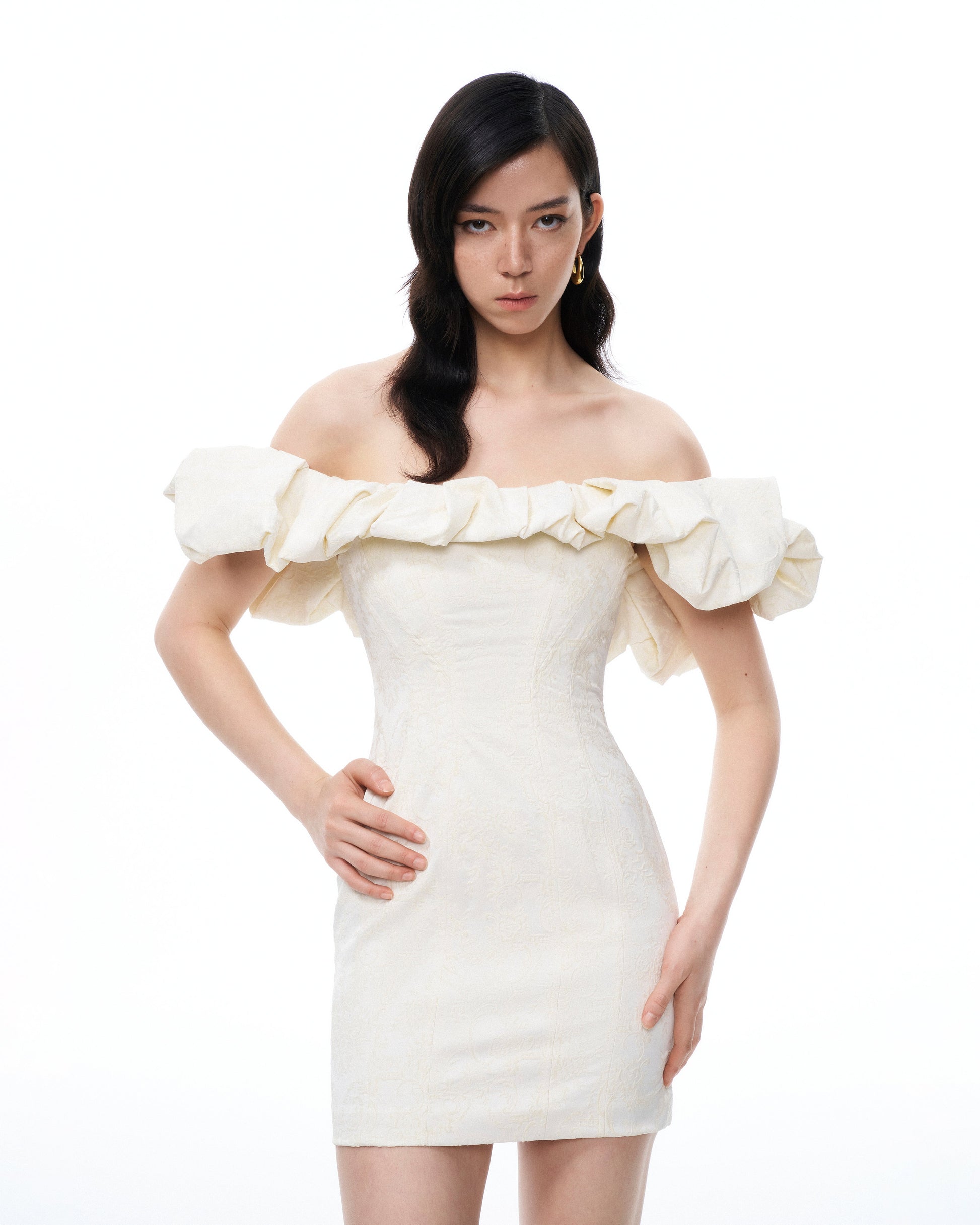 Althea Clouds Shoulders Floral Embroidered Mini Dress - White