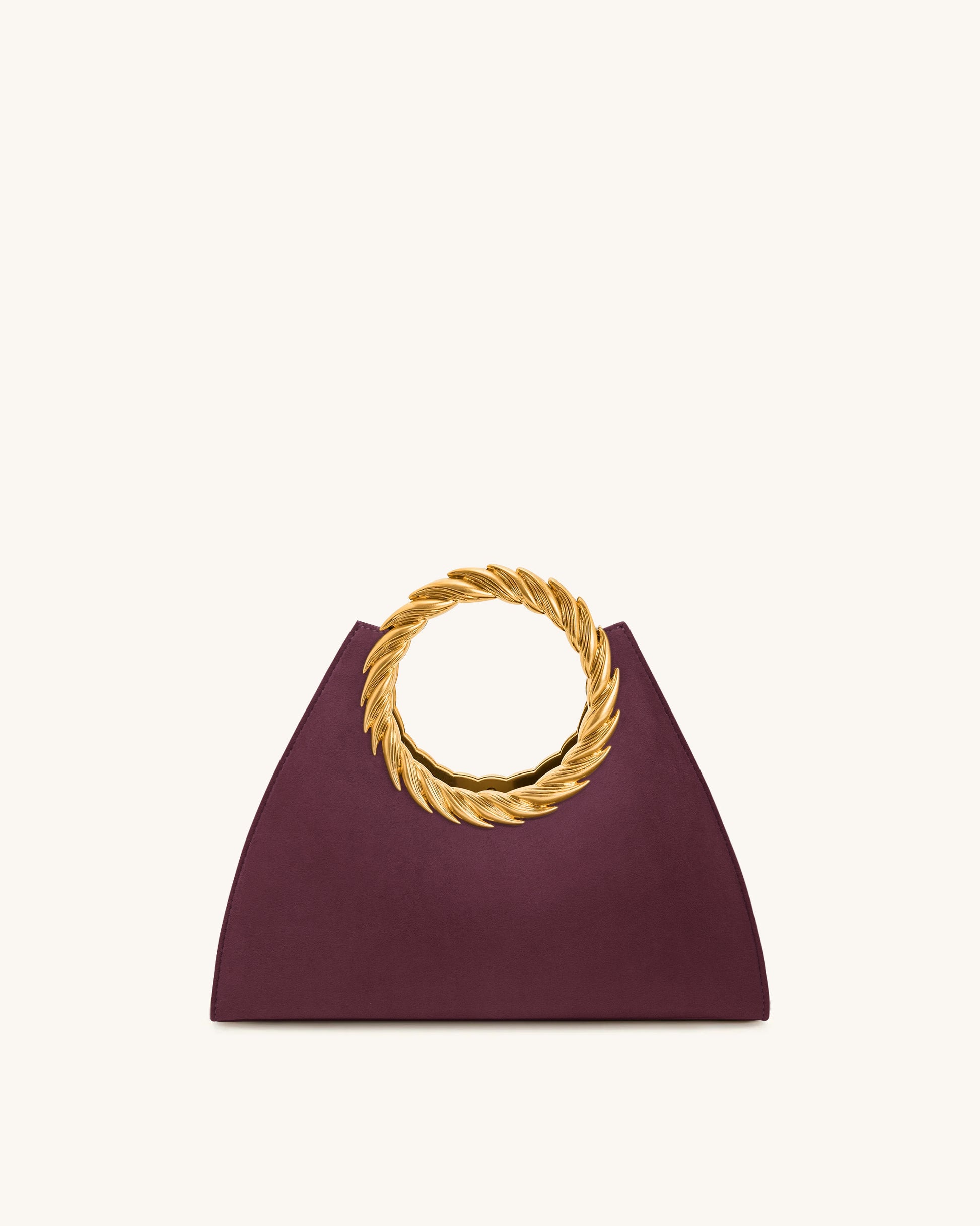 Amiya Leaf Handle Faux Suede Sculpture Bag - Merlot Red
