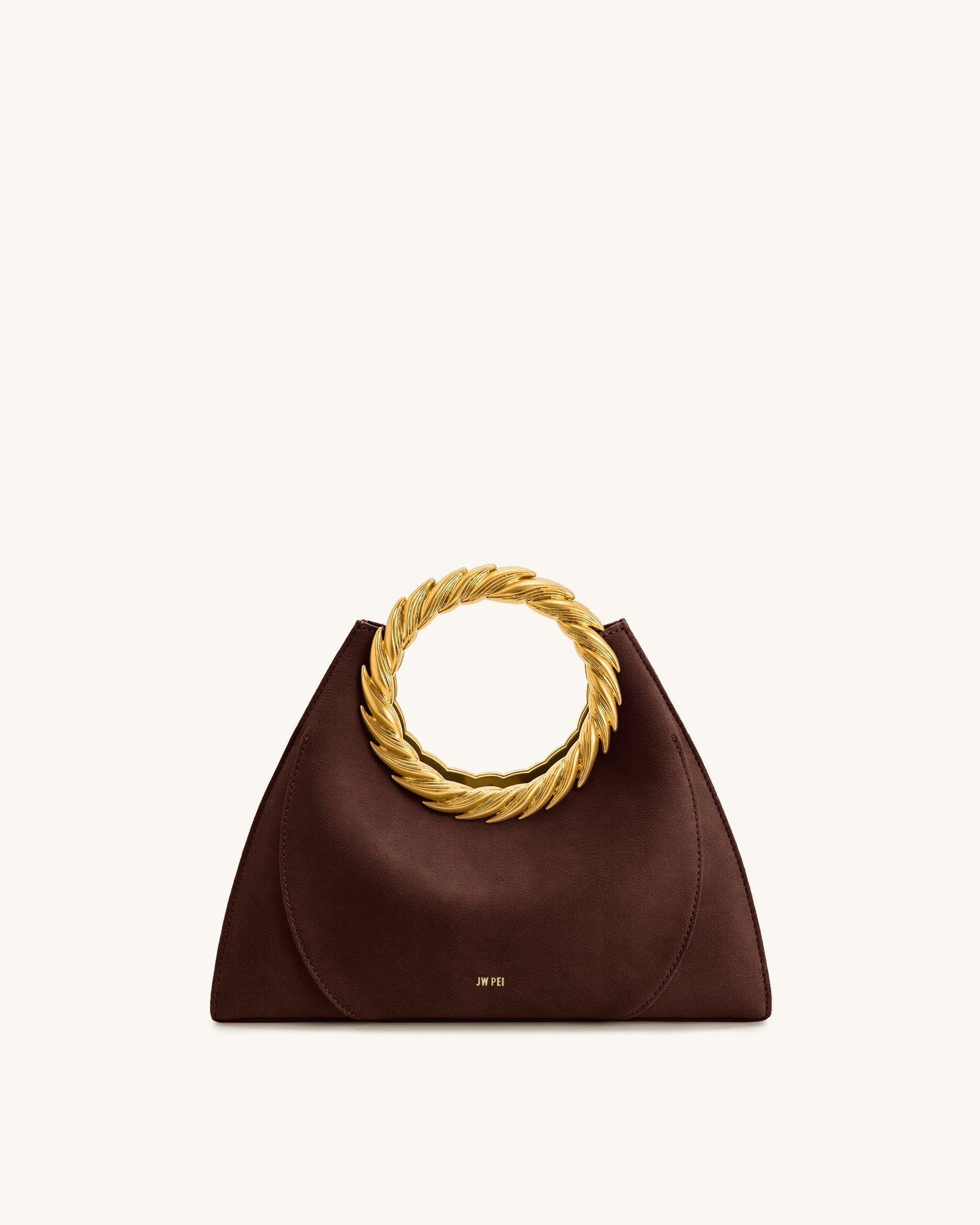 Amiya Leaf Handle Faux Suede Sculpture Bag - Mocha Brown