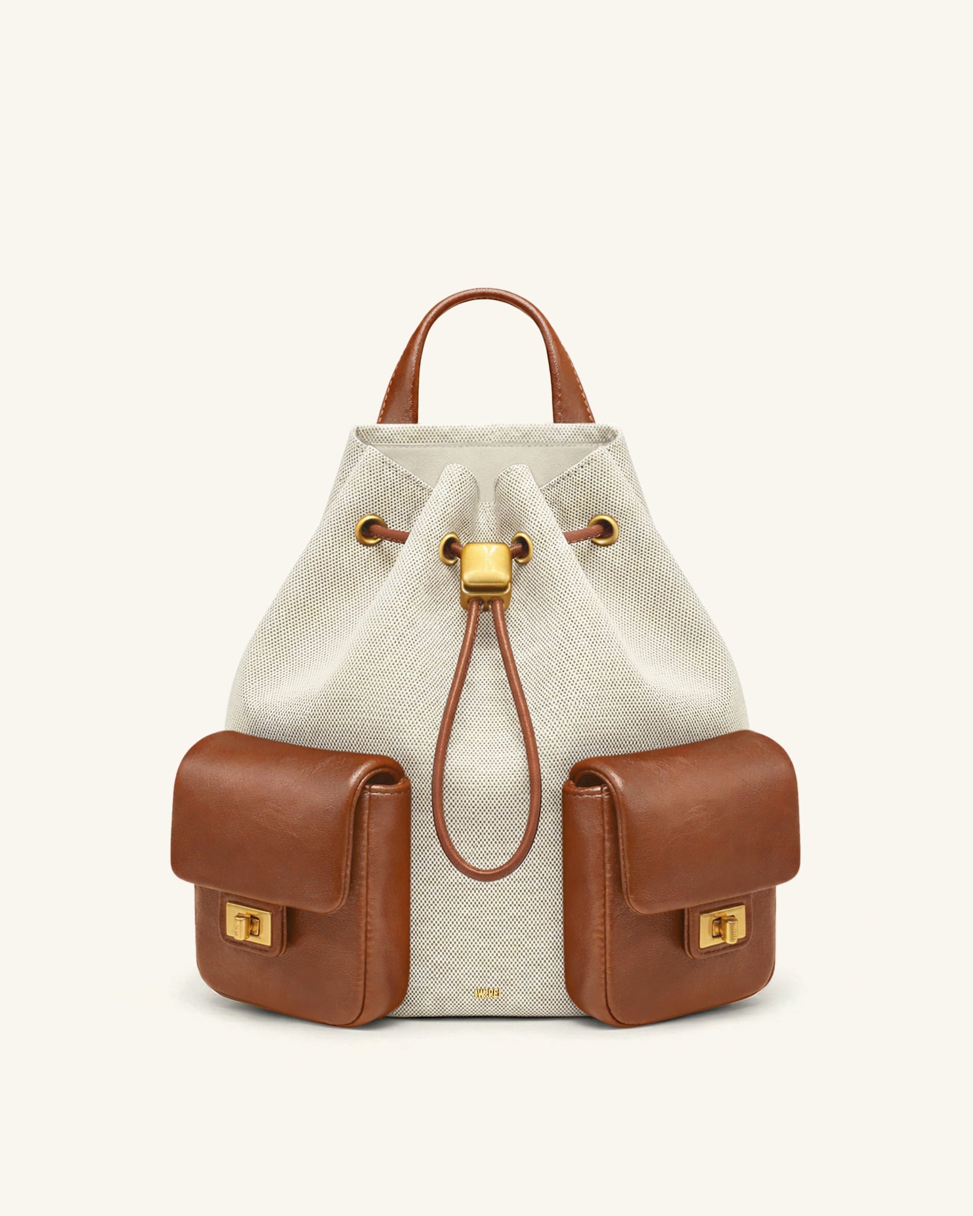 Avery Drawstring Utility Backpack – Ivory Brown Canvas