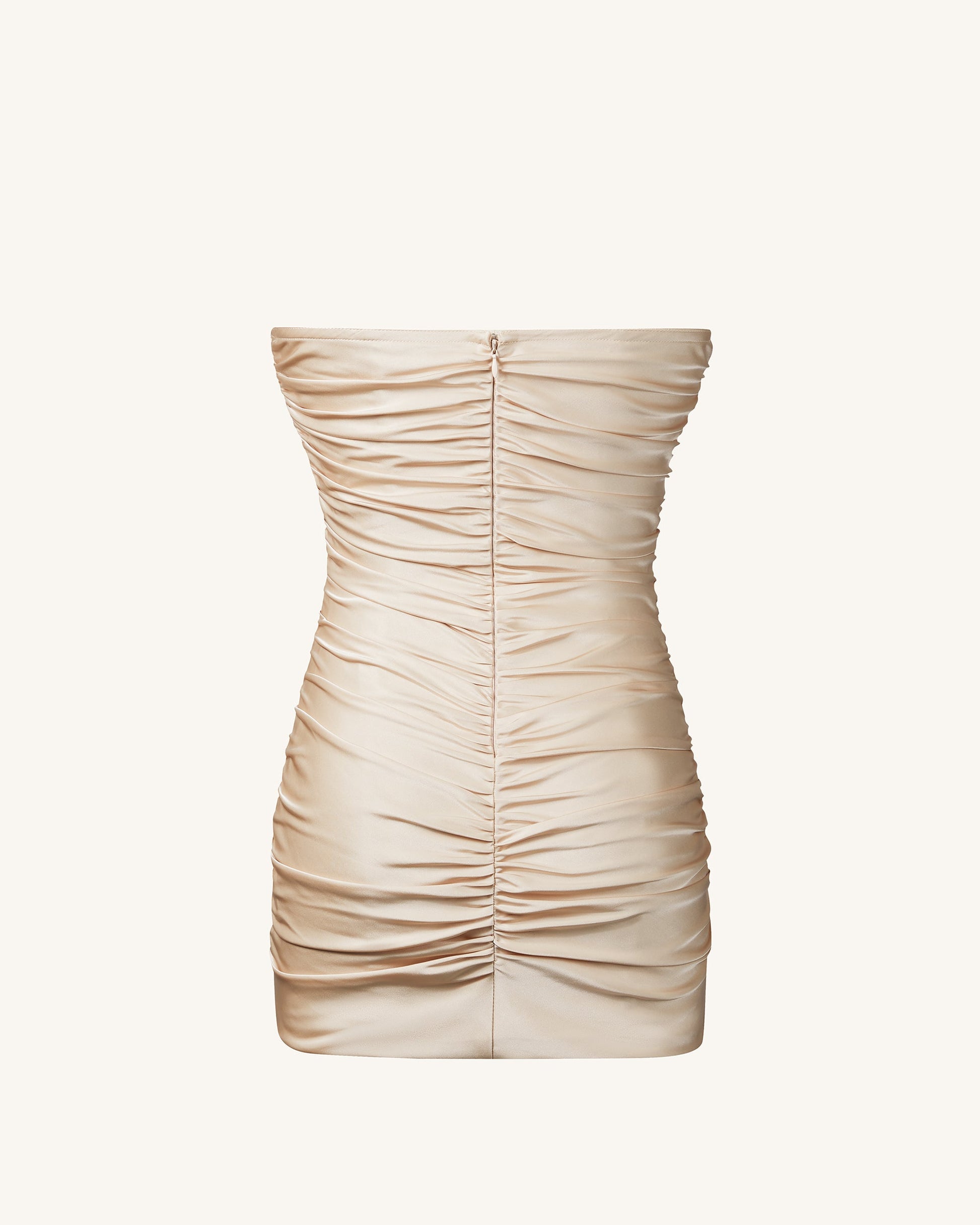 Bailee Apricot Floral Applique And Ruched Tube Mini Dress - Apricot