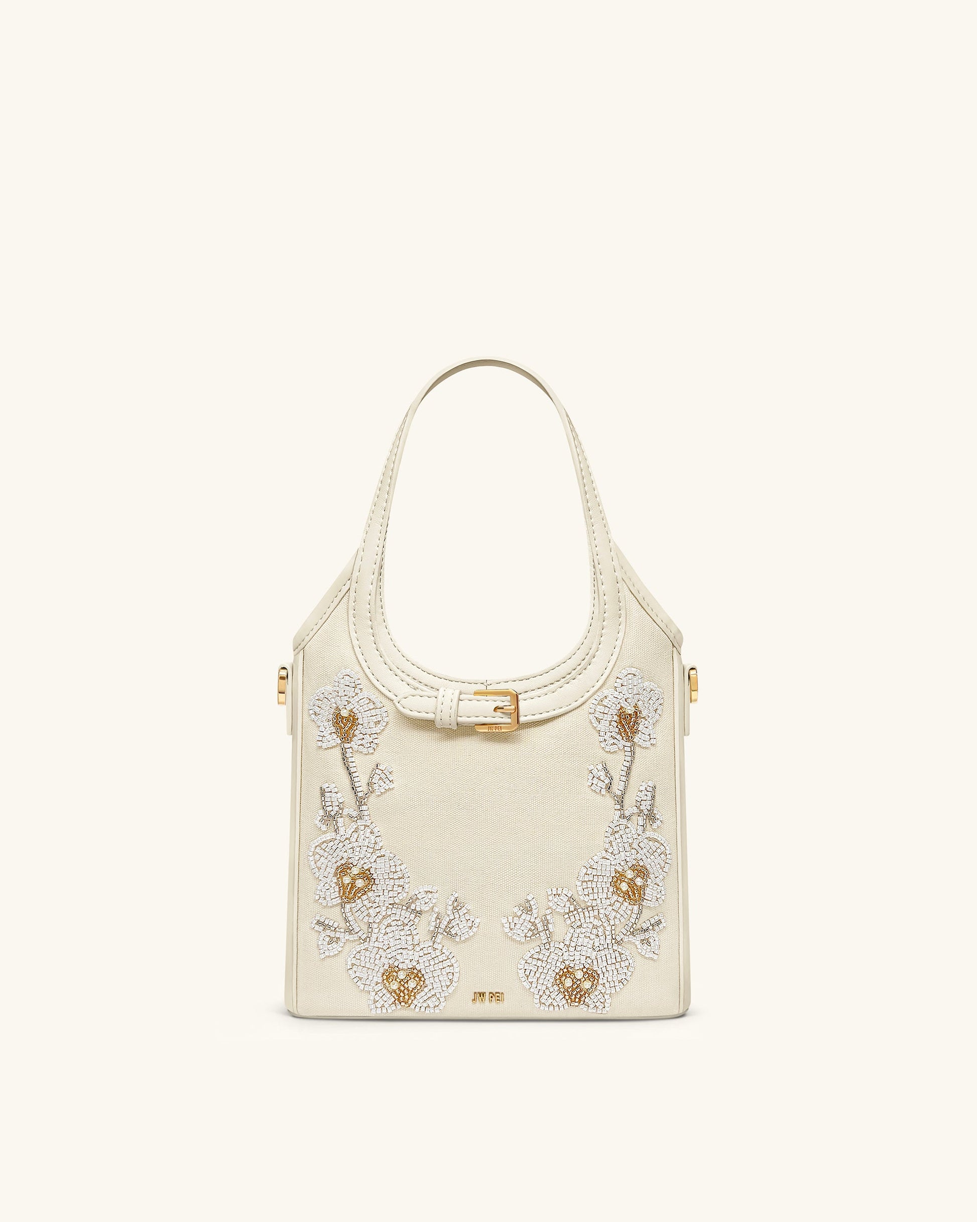Brooke Mini Belted Embellished Orchid Beaded Top Handle Bag - Ivory