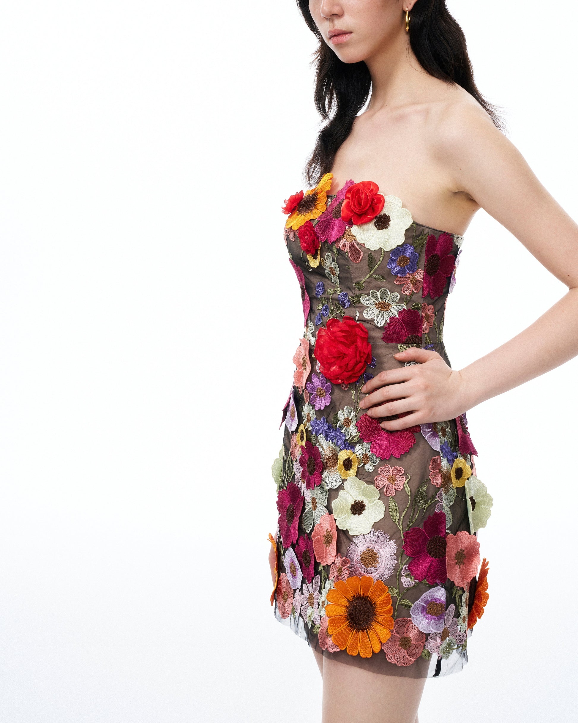 Cassian Floral Embroidered Mini Dress - Black Multi