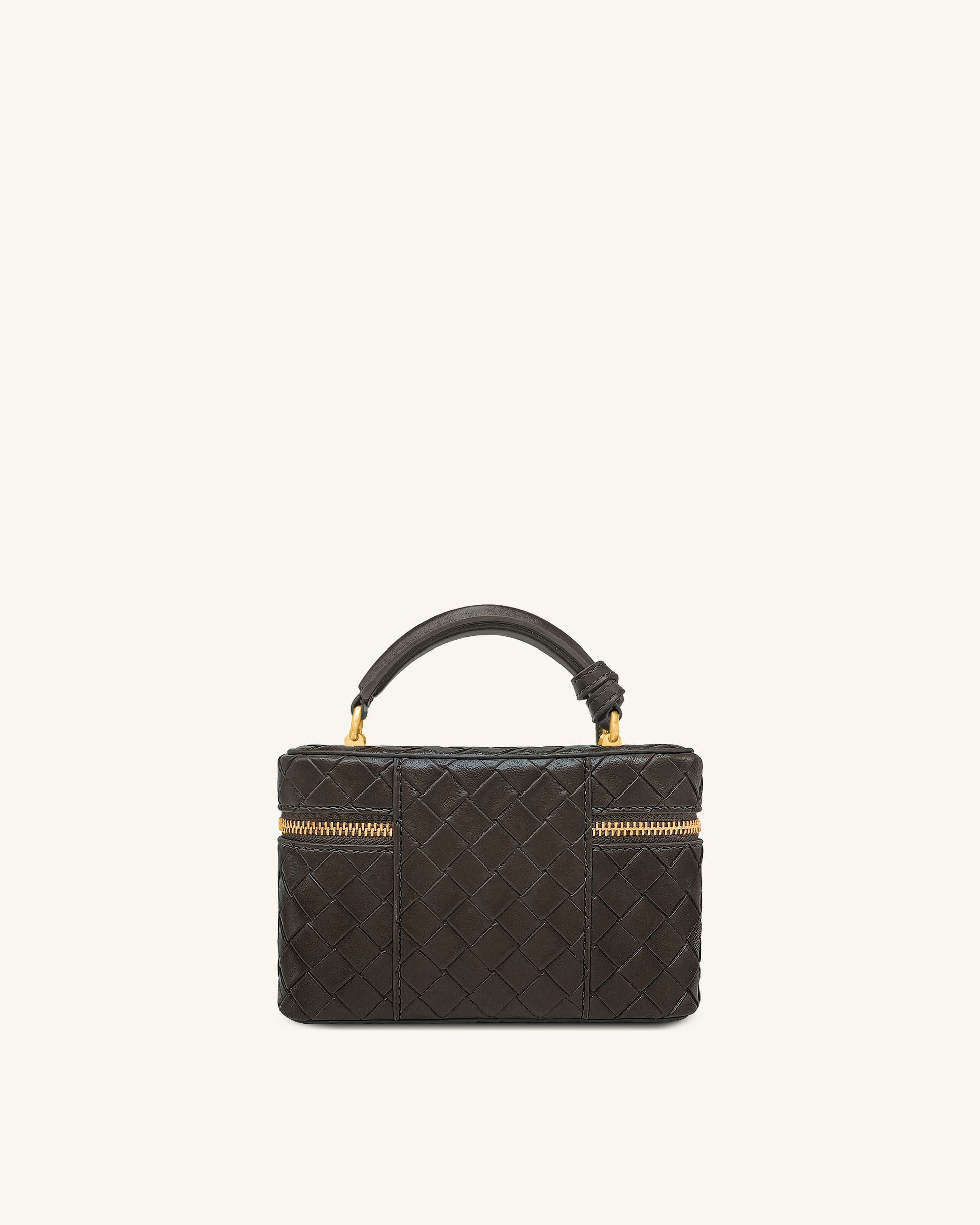 Cleo Woven Texture Box Shape Top Handle Bag - Dark Brown