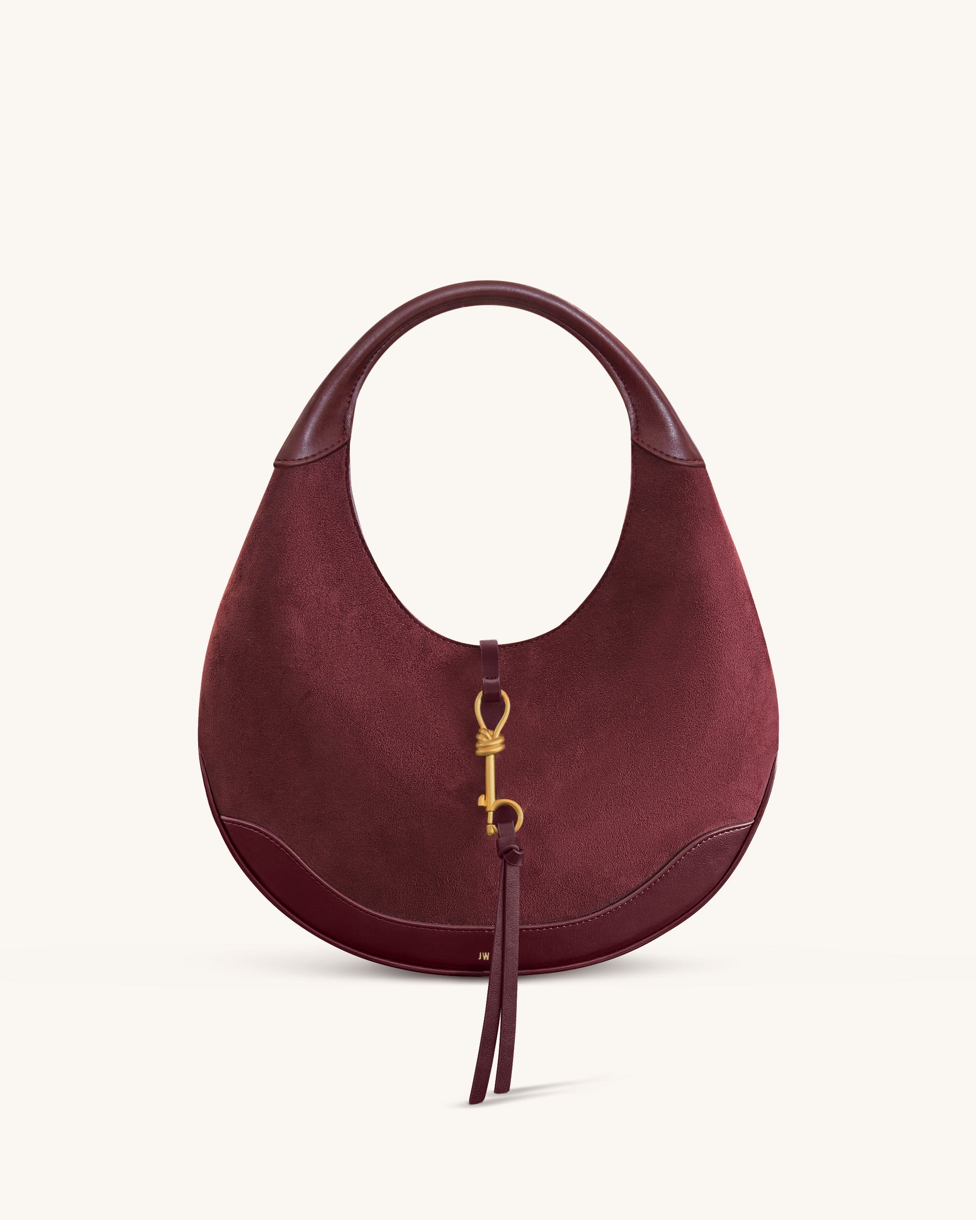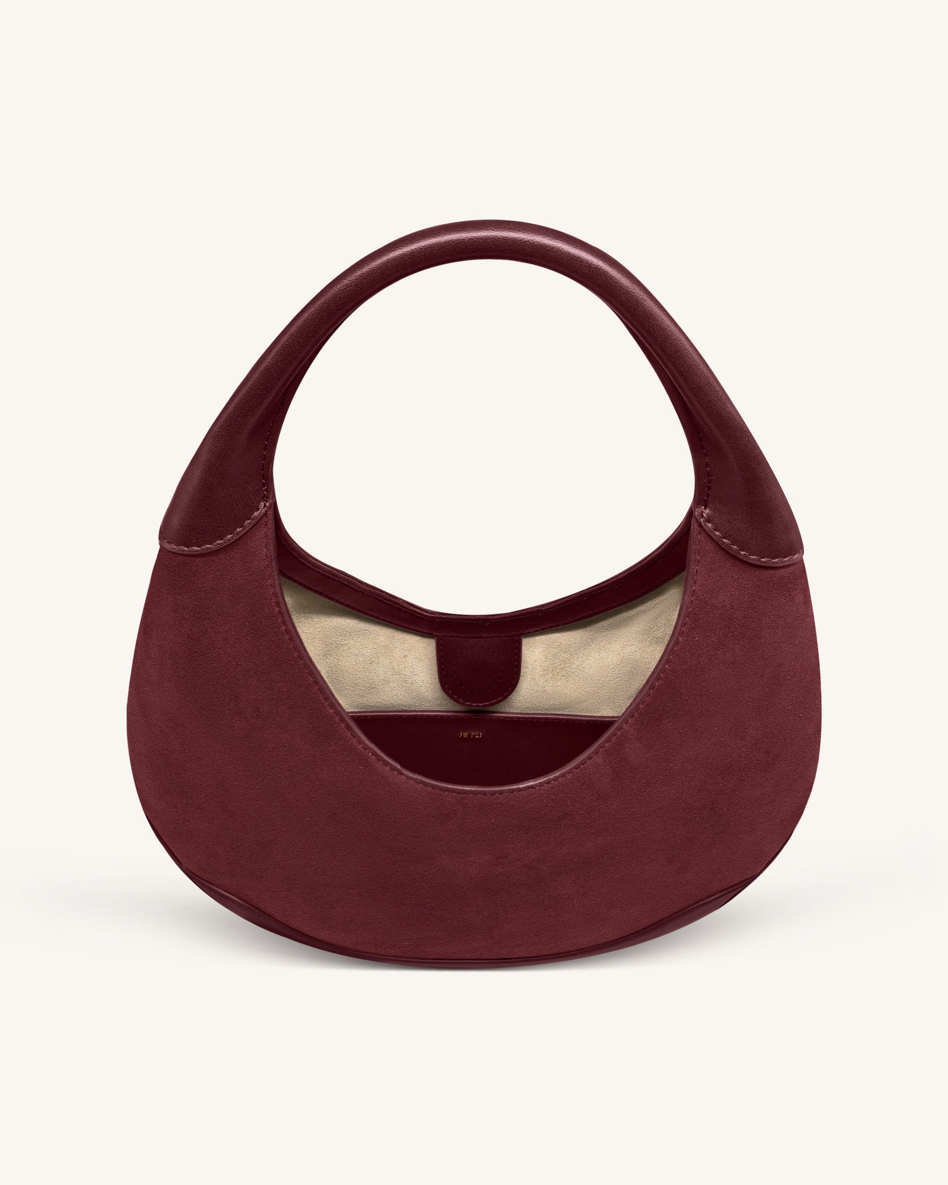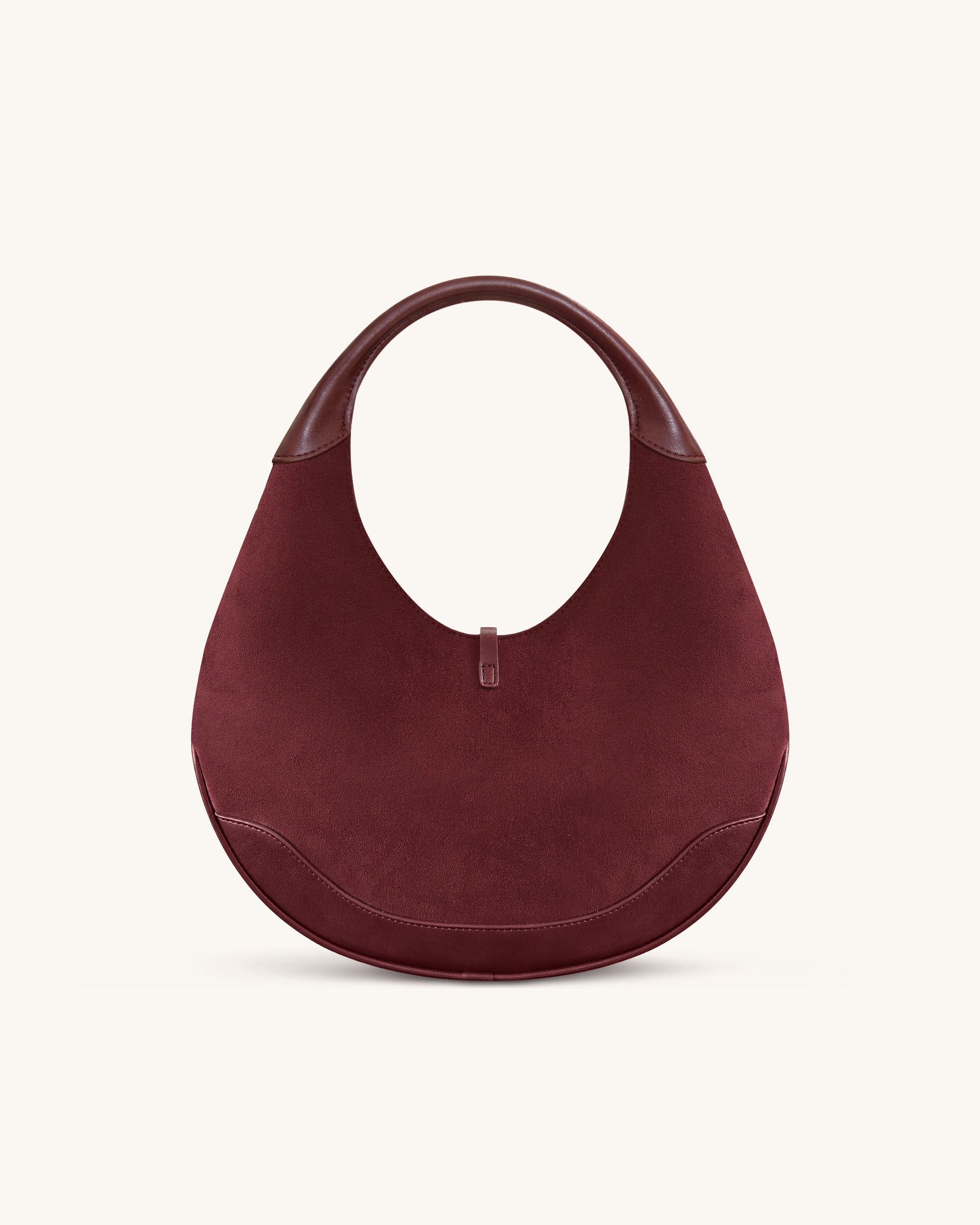 Colette Faux Suede Crescent Hobo Bag - Deep Claret