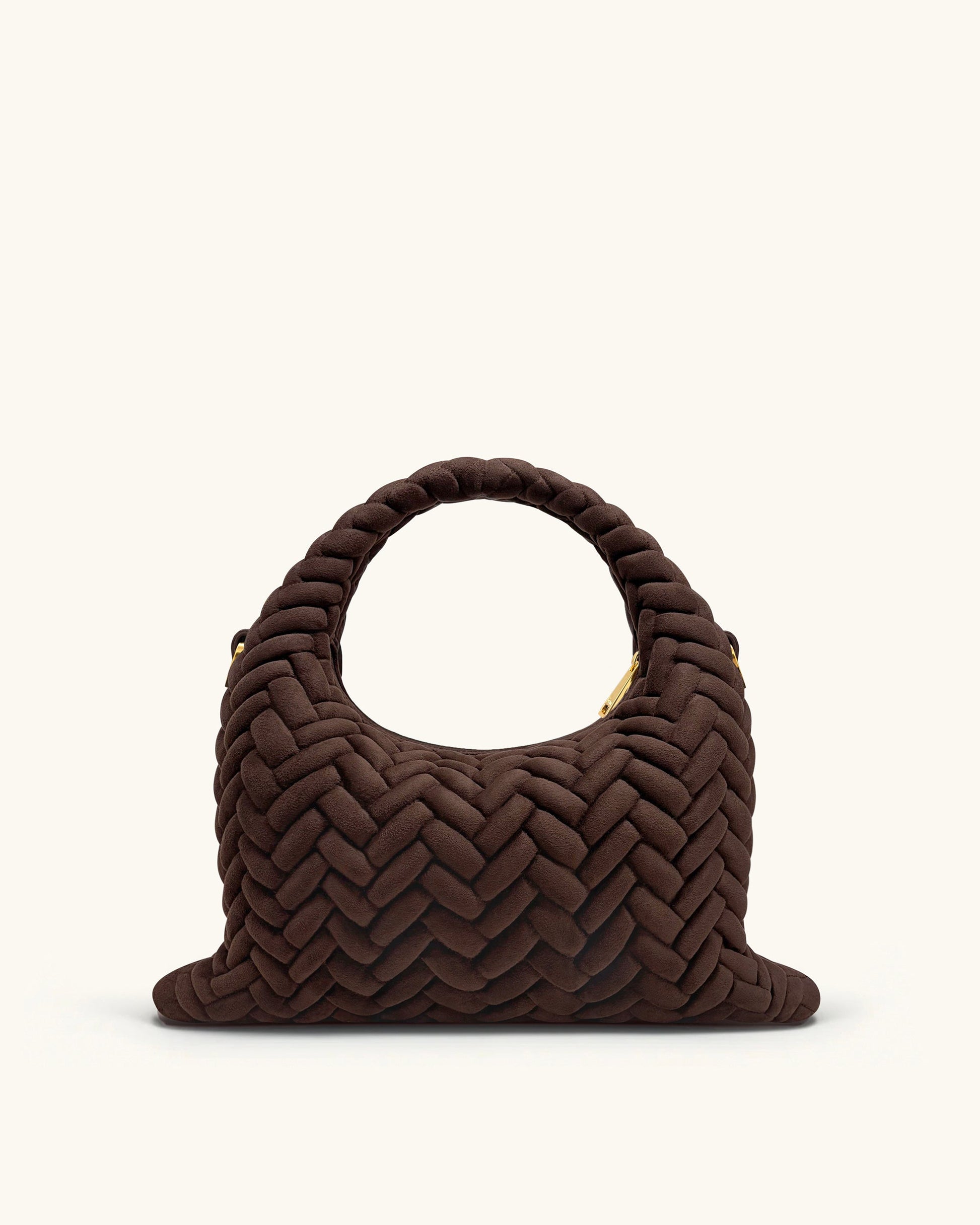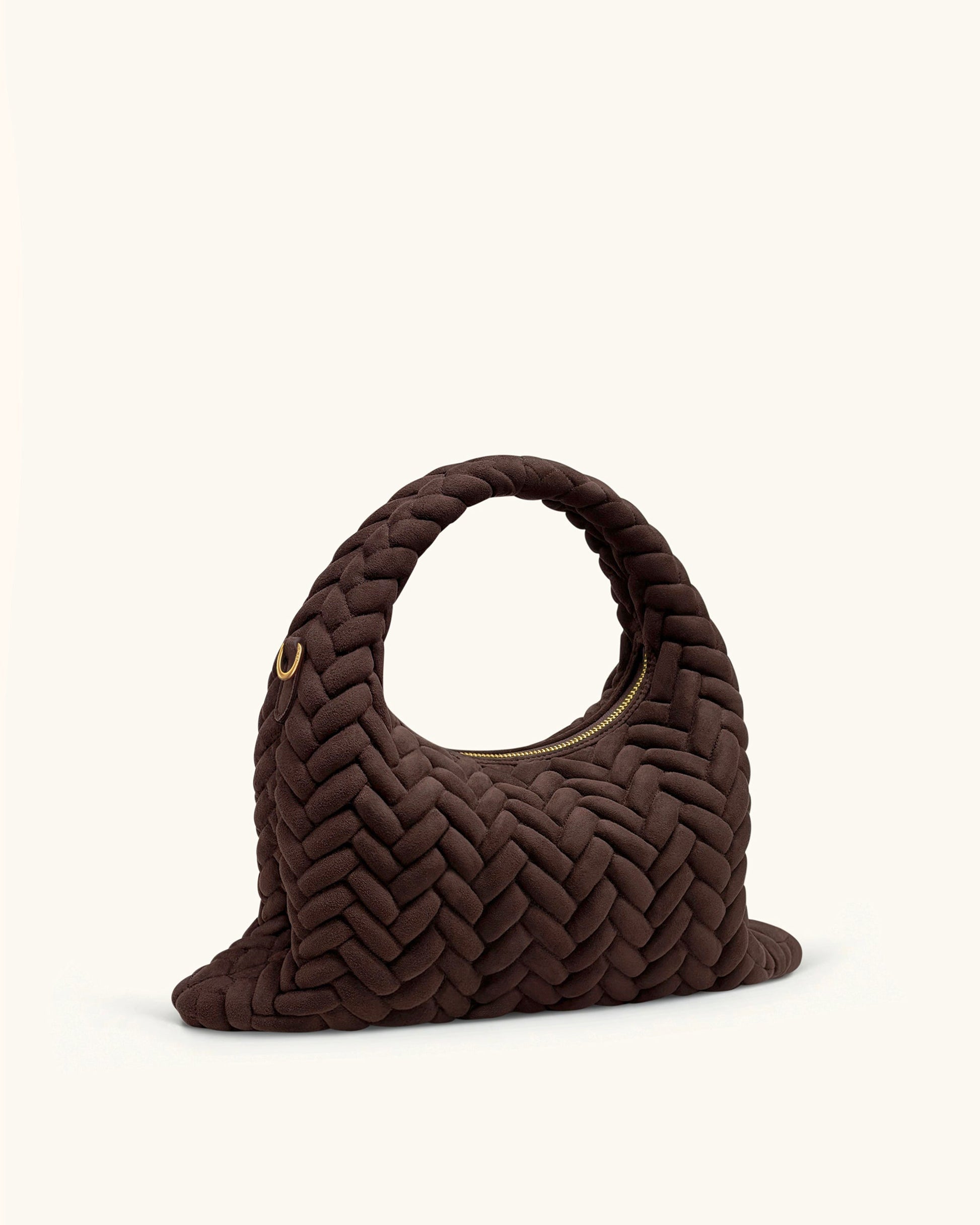 Cora Faux Suede Quilting Handle Bag - Dark Brown