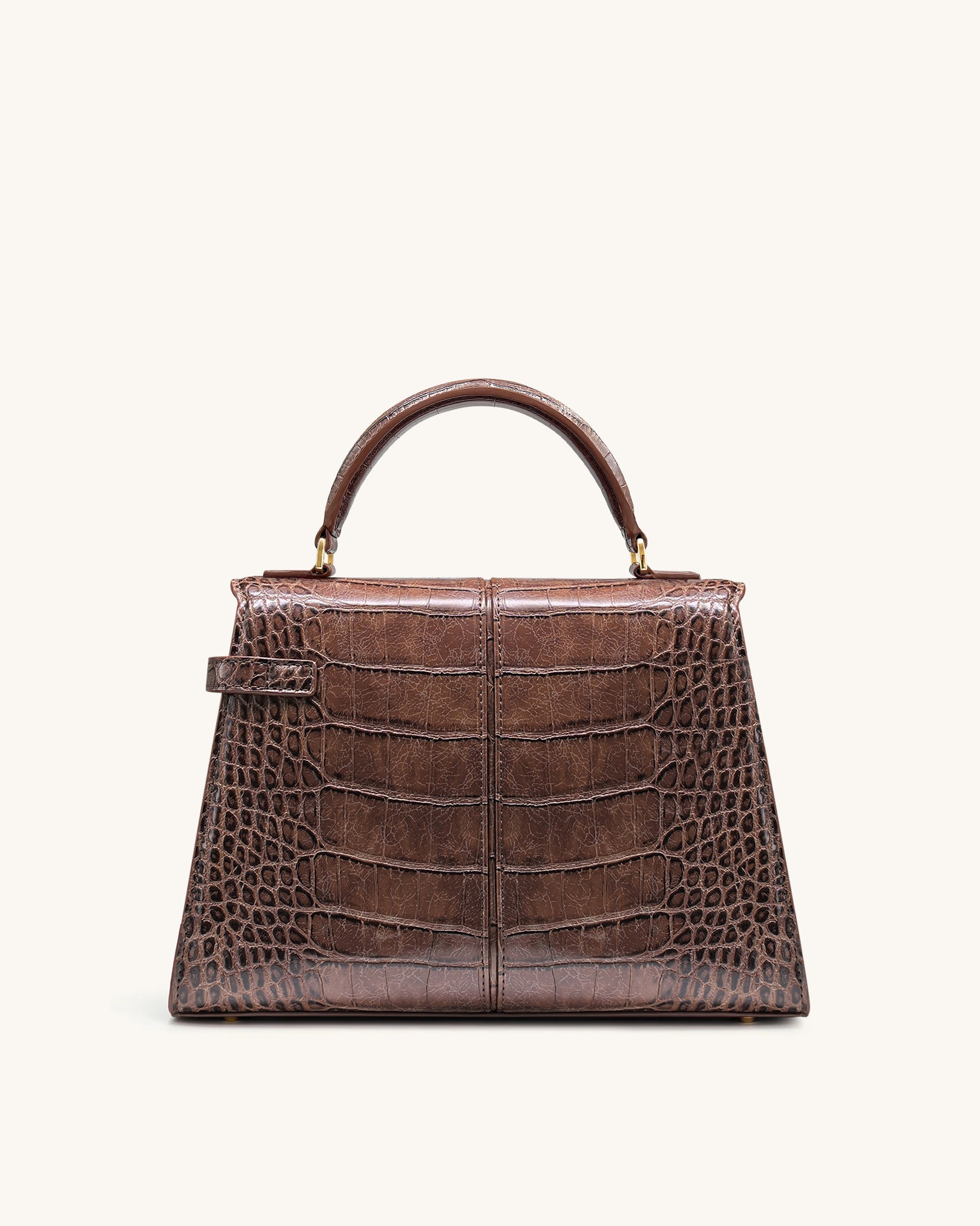 Elise Large Croc-Embossed Top Handle Bag - Chestnut Brown