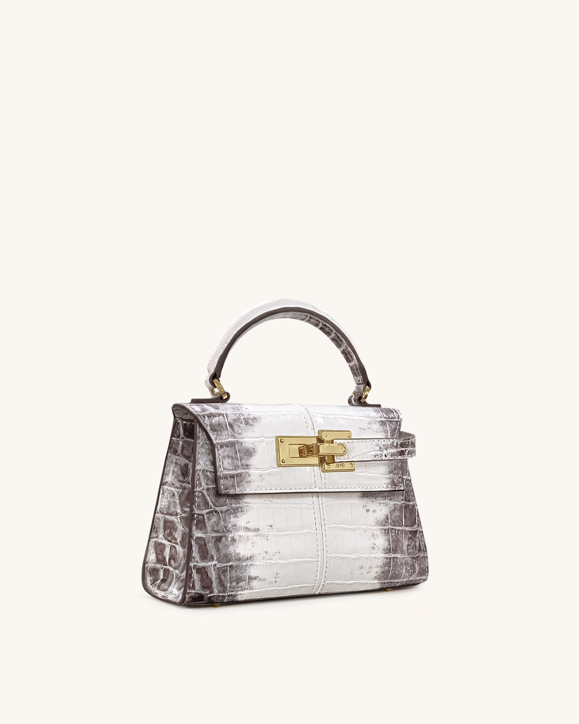 Elise Top Handle Bag - White Croc