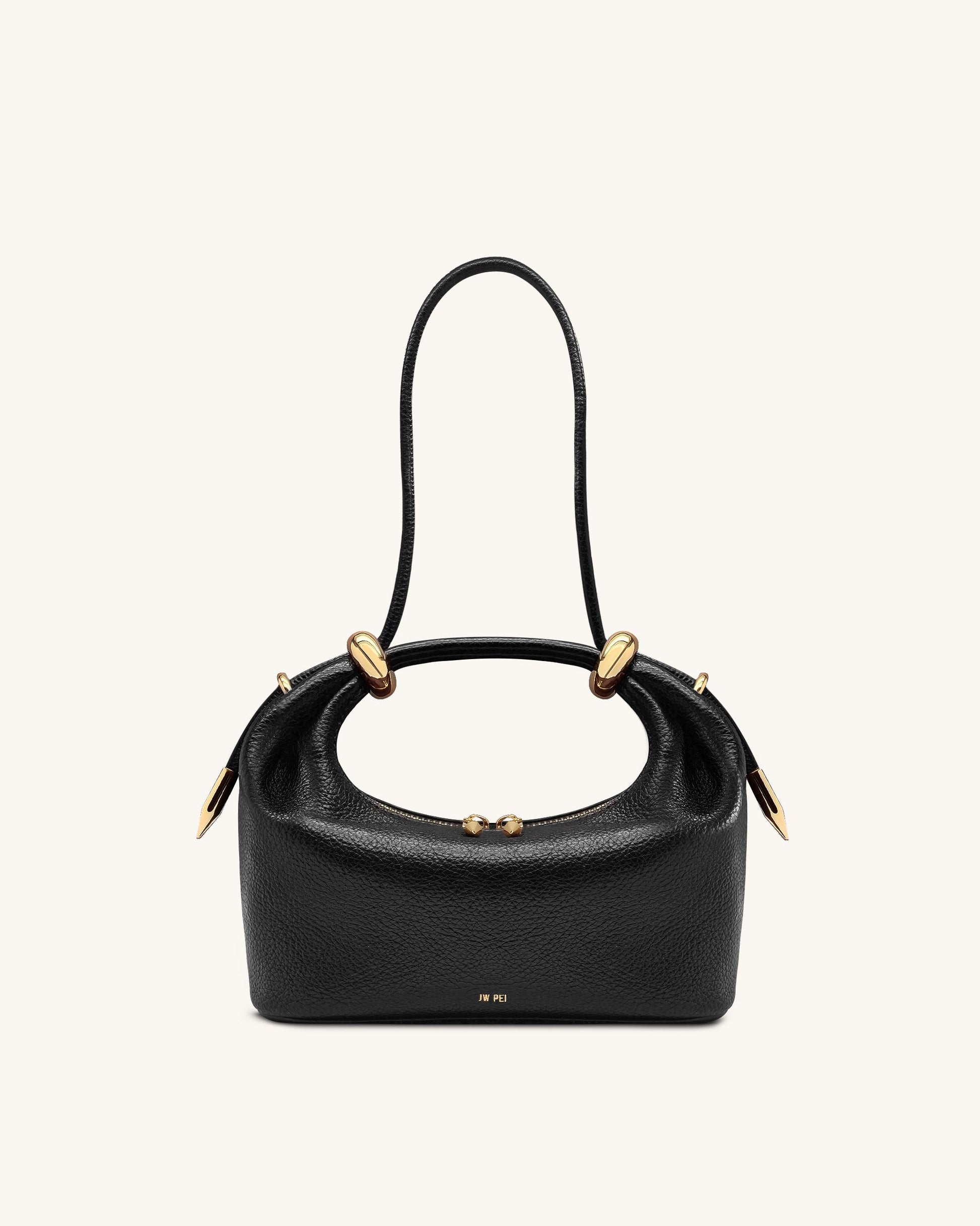 Ellie Metal Ring Embellished Top Handle Bag - Black