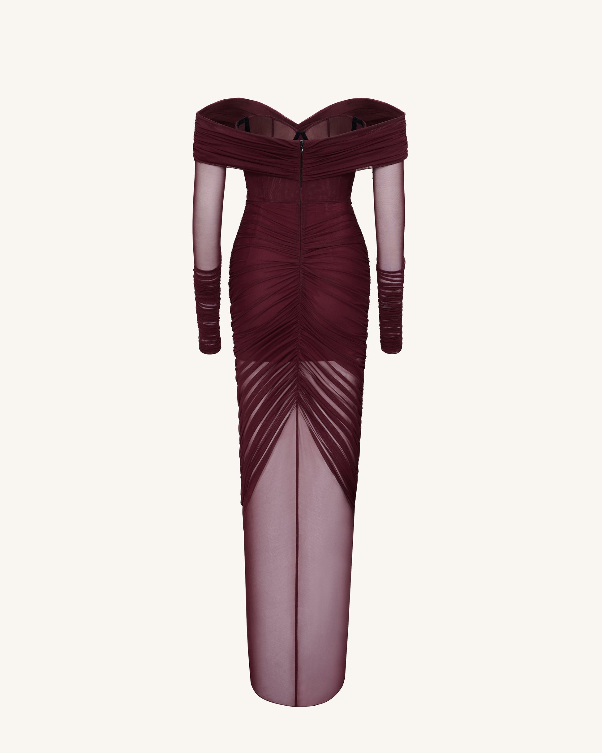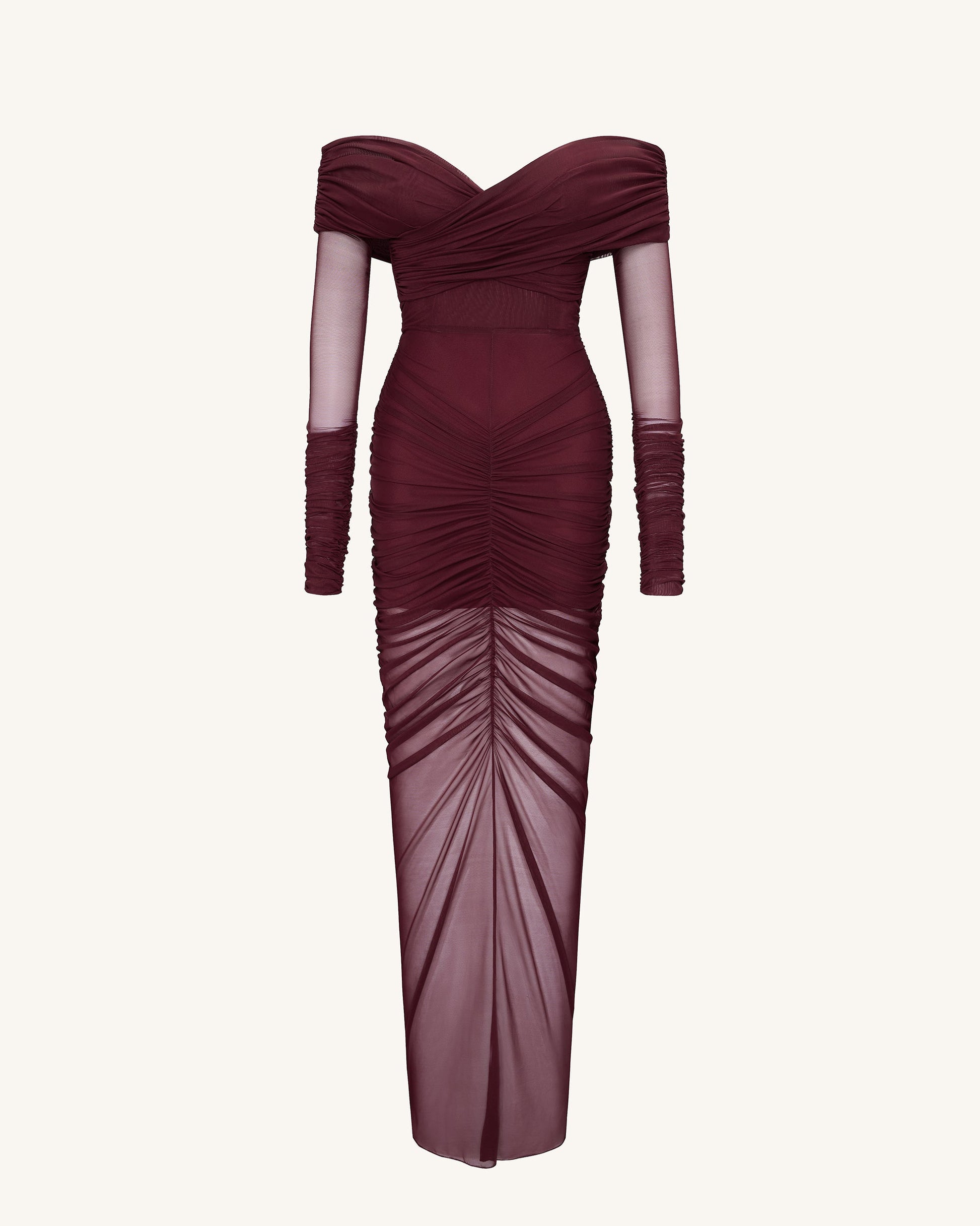 Emily Elegant Off-Shoulder Ruched Gown - Red