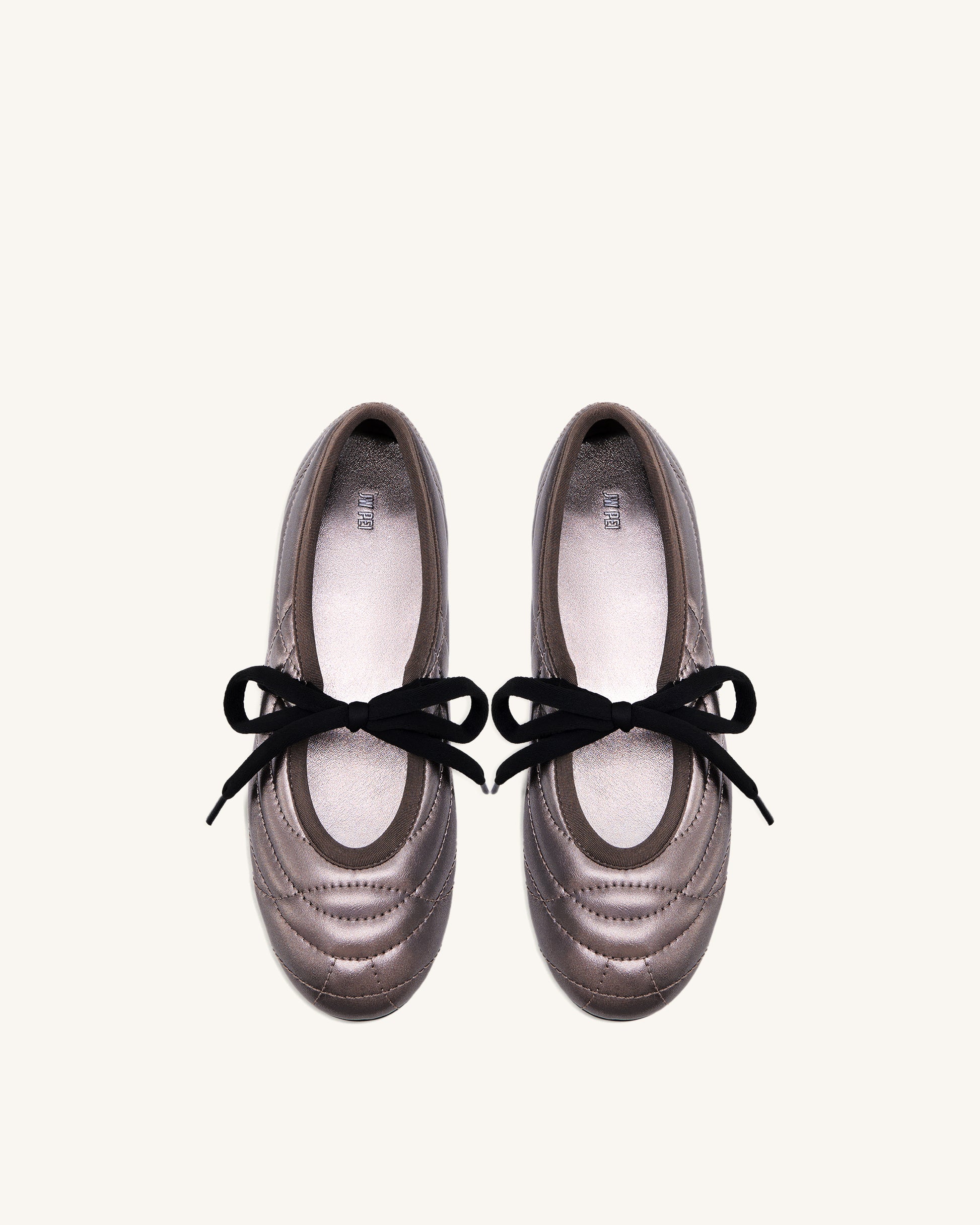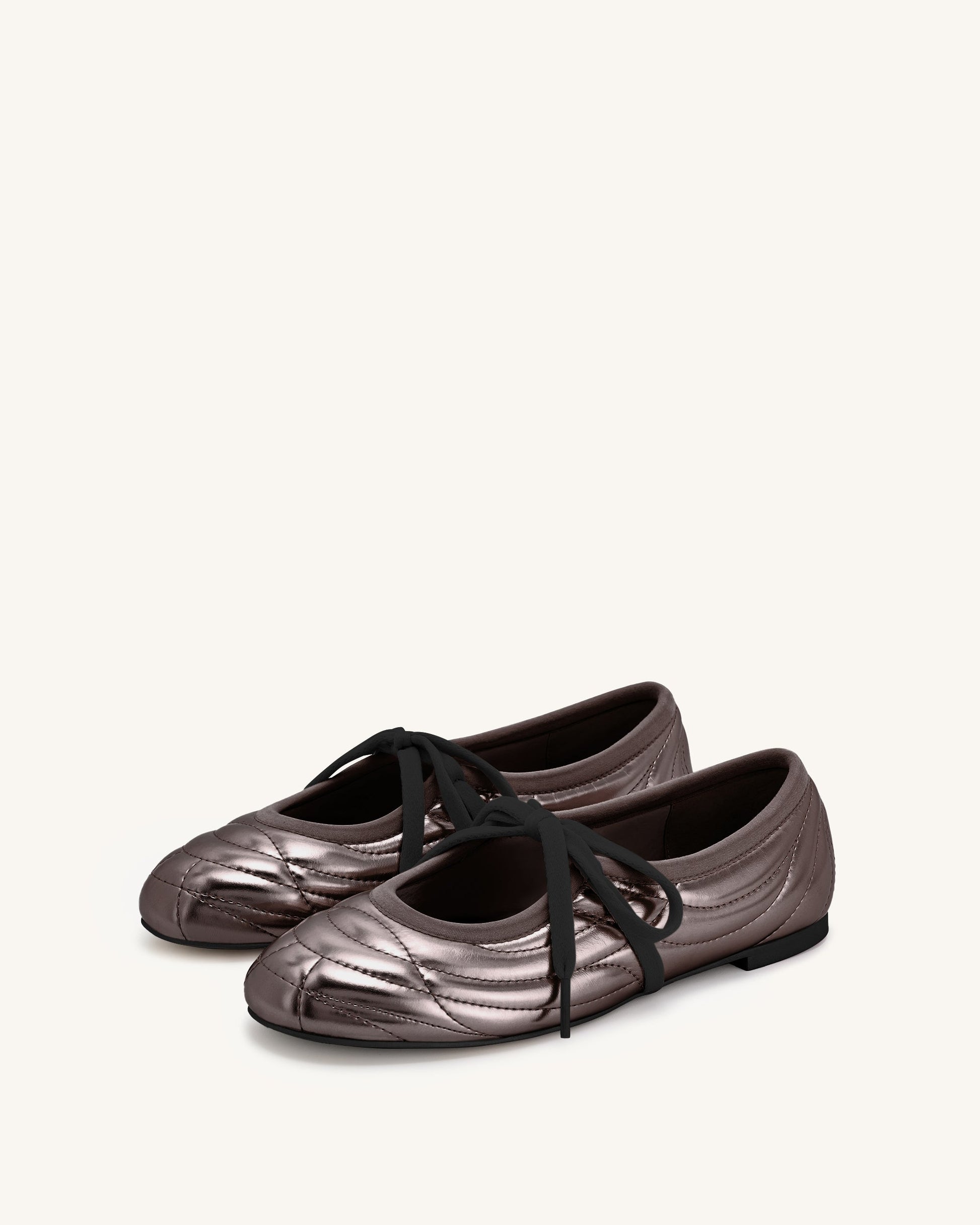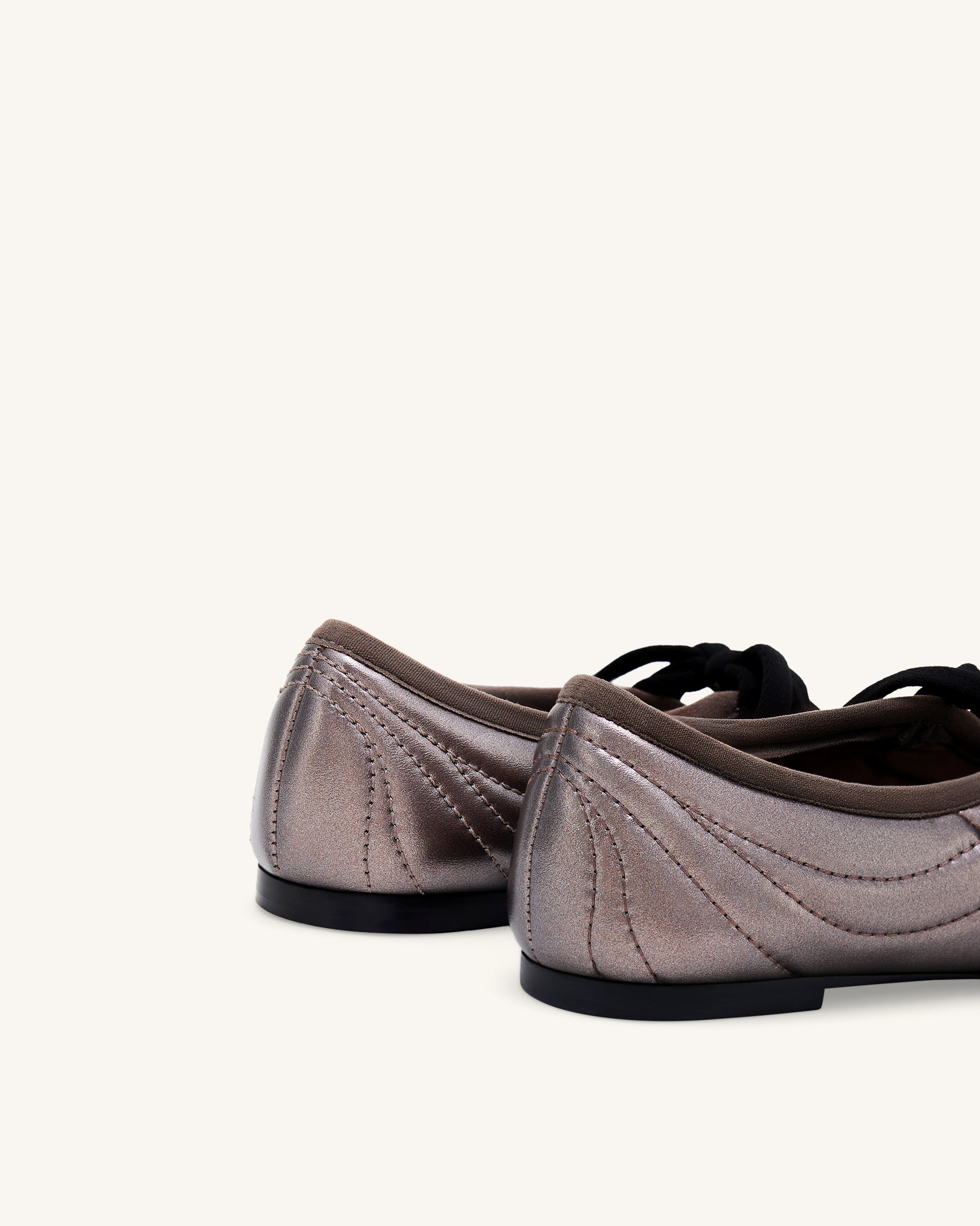 Erika Topstitching Lace-up Ballet Flats - Dark Brown