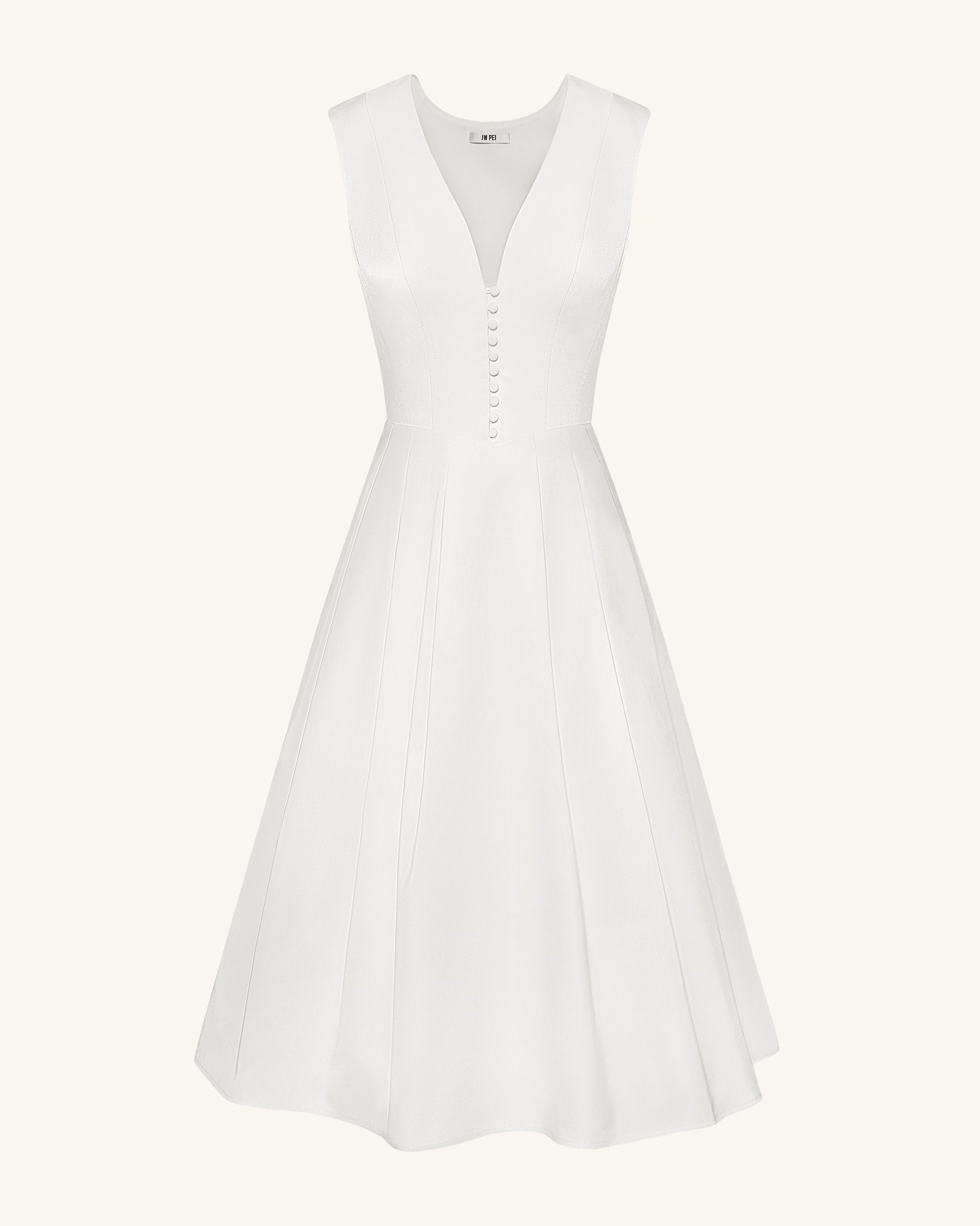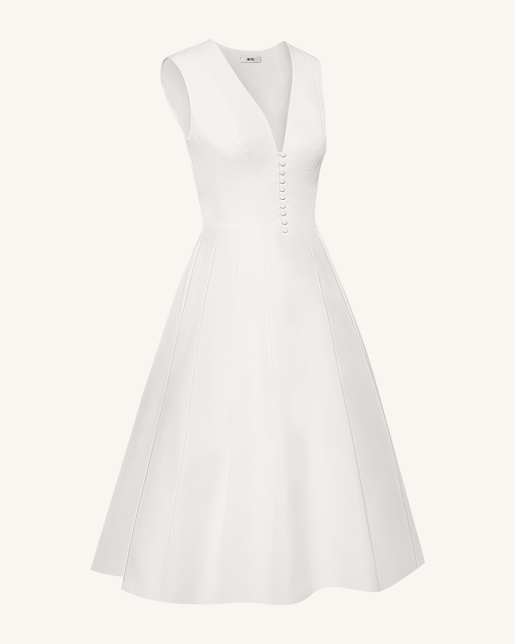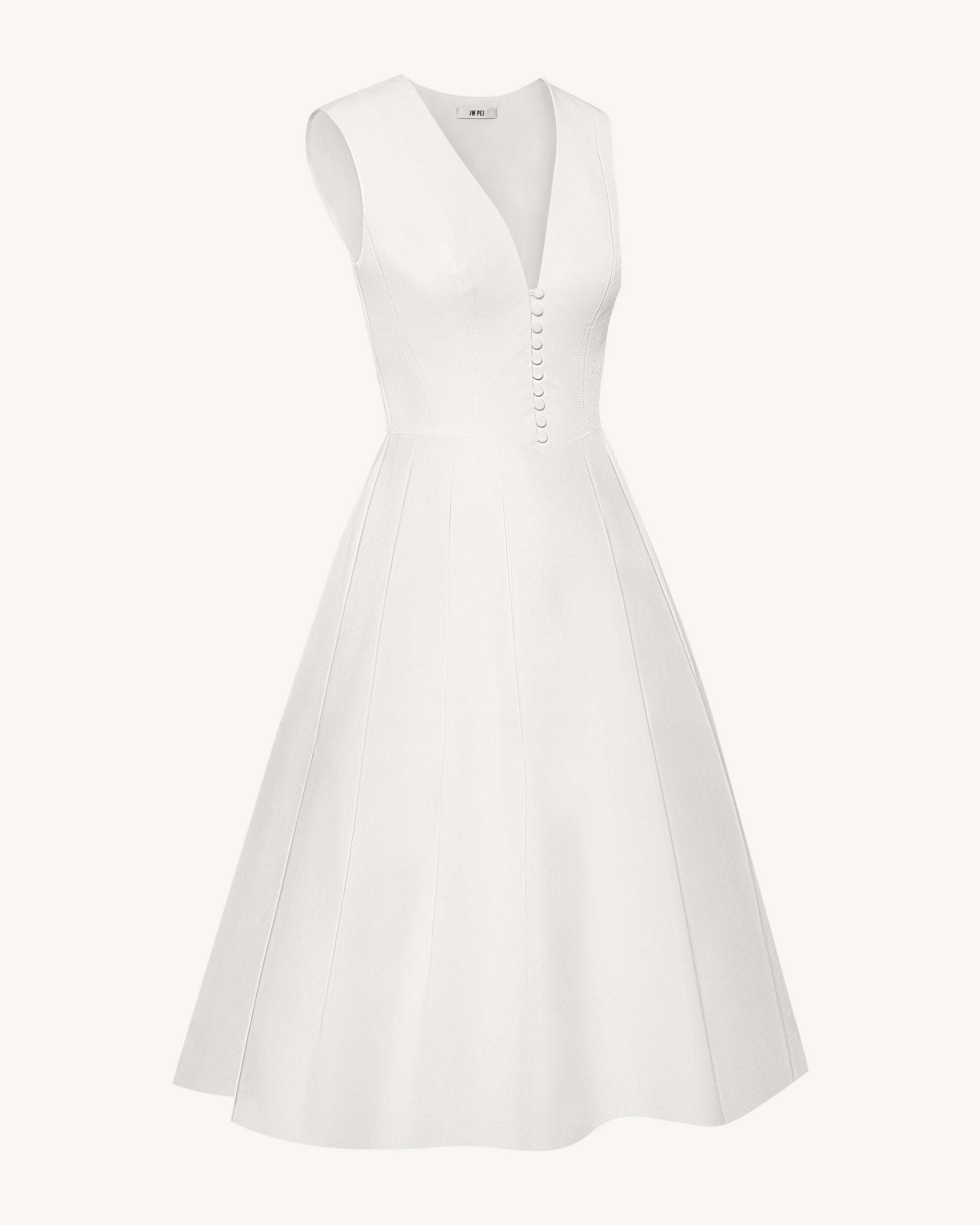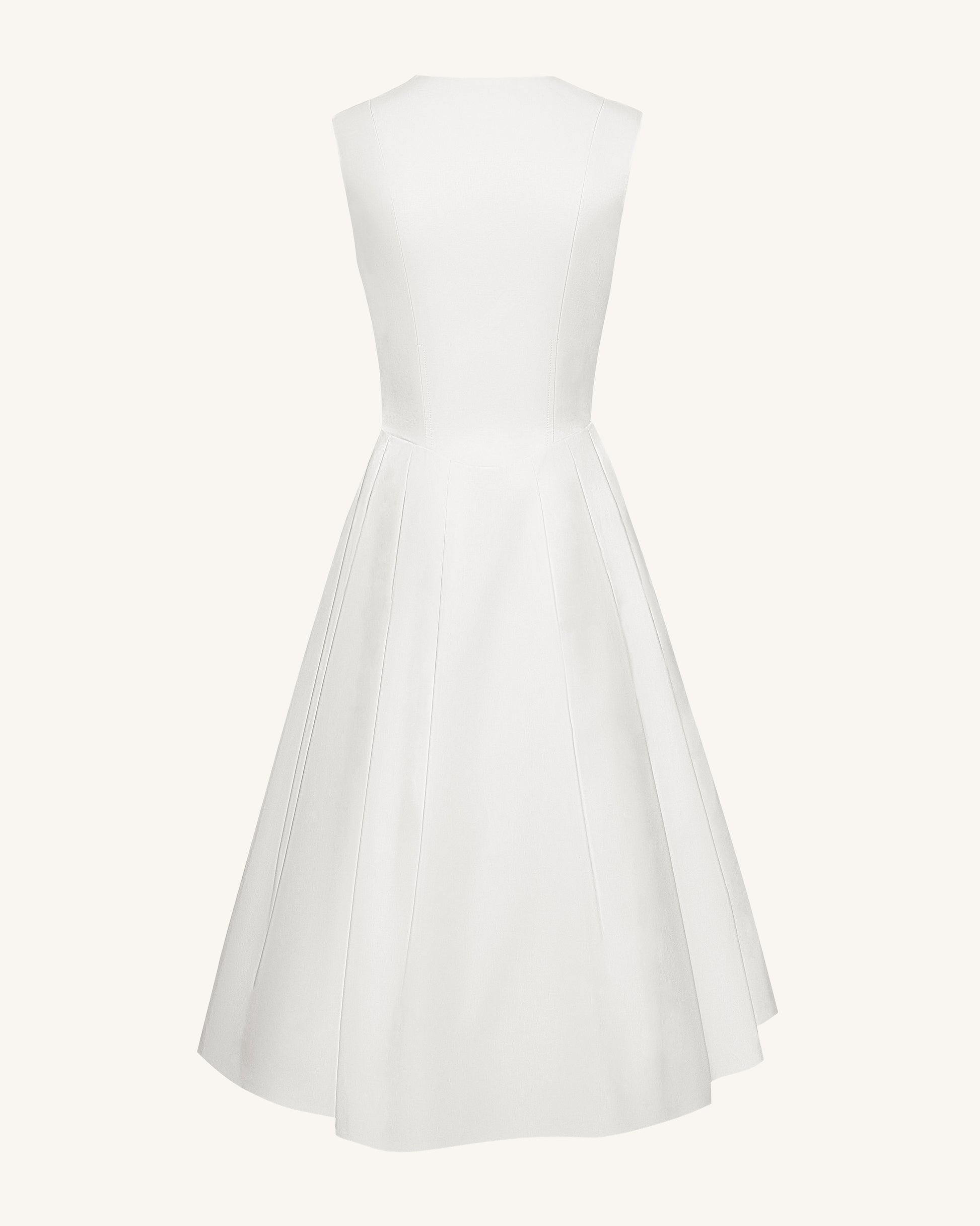 Front V-Neck Pleated Midi Dress - White