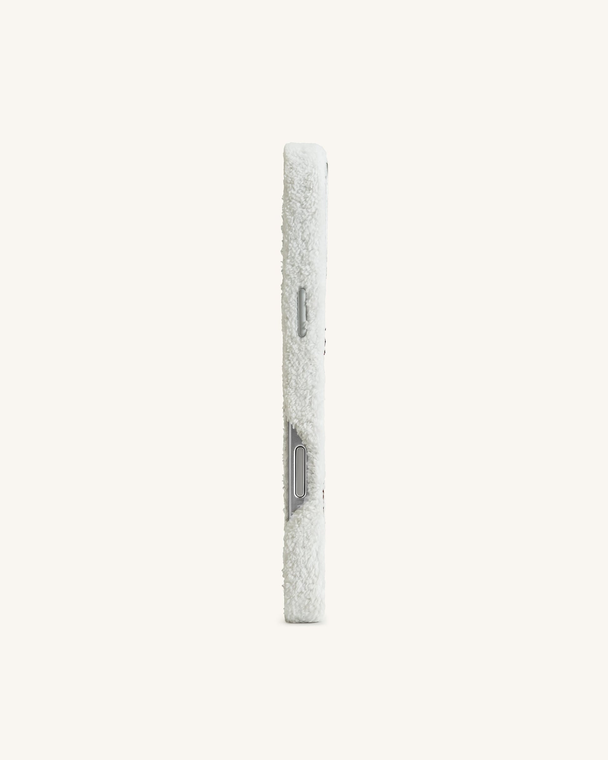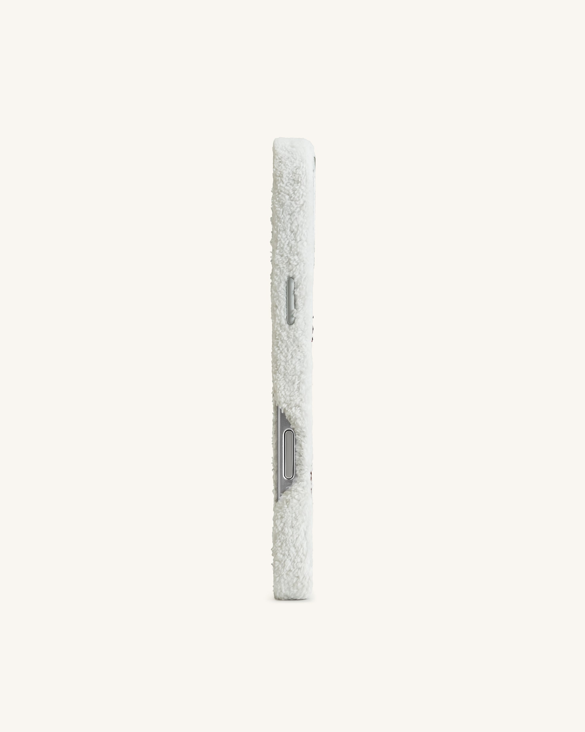 This phone case features a white plush fabric background embroidered with vibrant, colorful fruits including watermelon, cherry, lemon, kiwi, coconut, pomegranate, orange, and more. Playful and fresh, it adds a cheerful touch while providing a soft texture, enhanced grip, and basic protection for your device.Each phone case is handmade, so slight variations in craftsmanship may occur with every product.