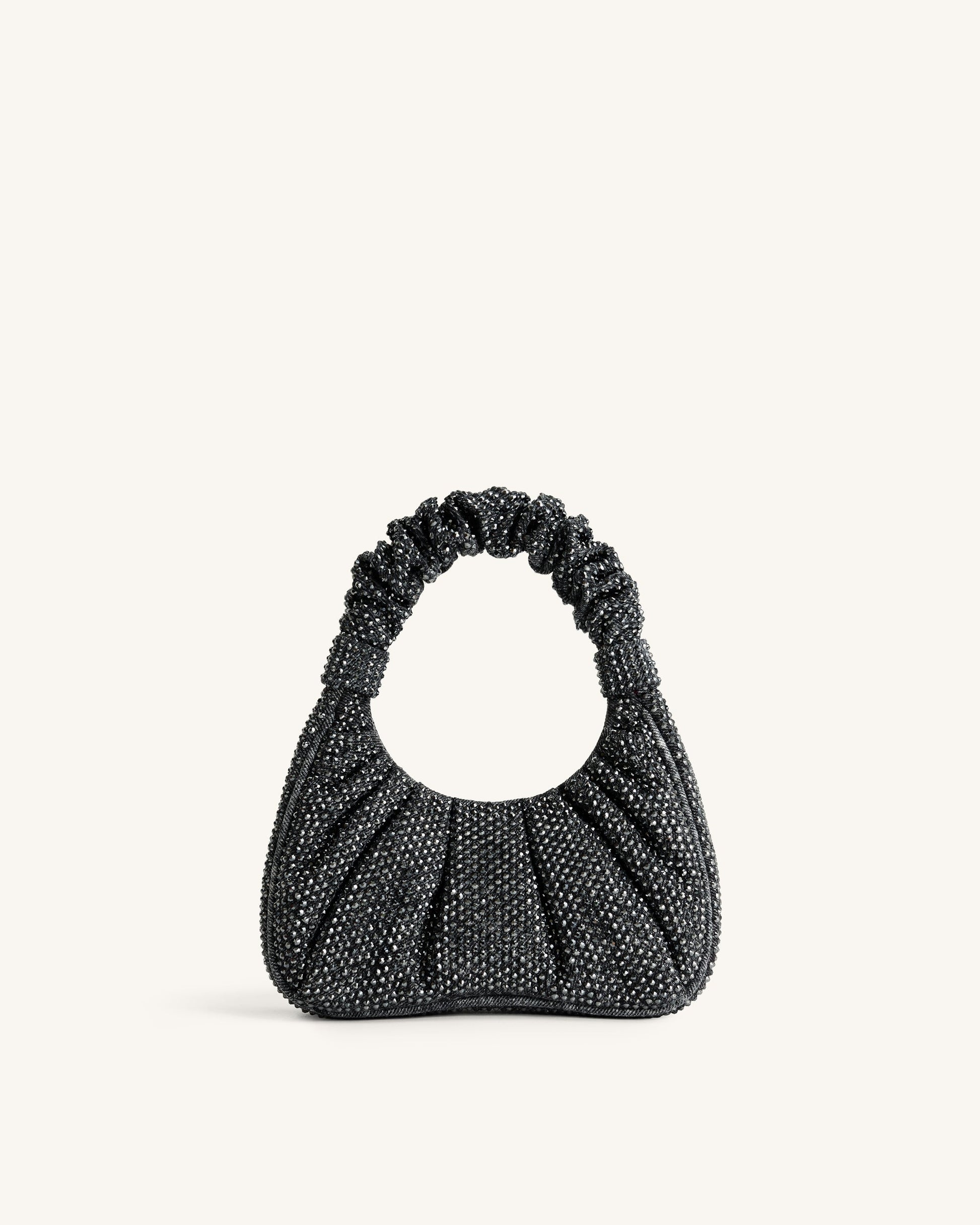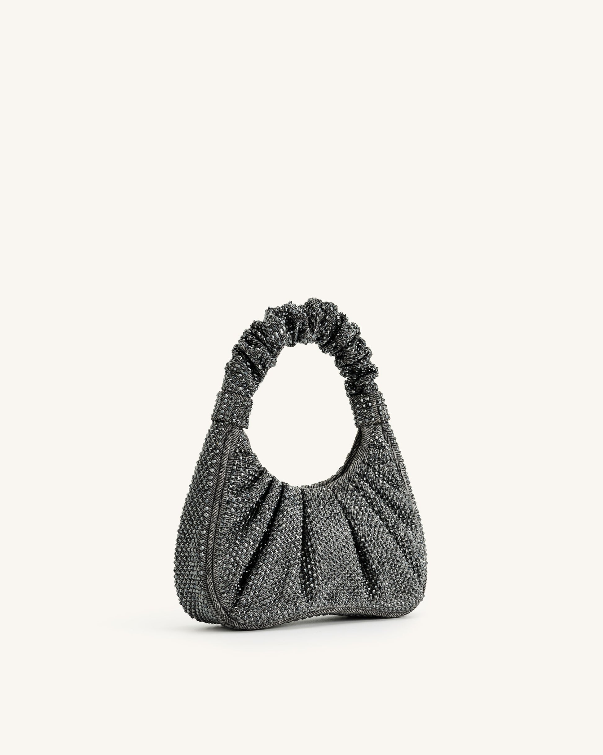 Gabbi Artificial Crystal Medium Ruched Hobo Handbag - Anthracite