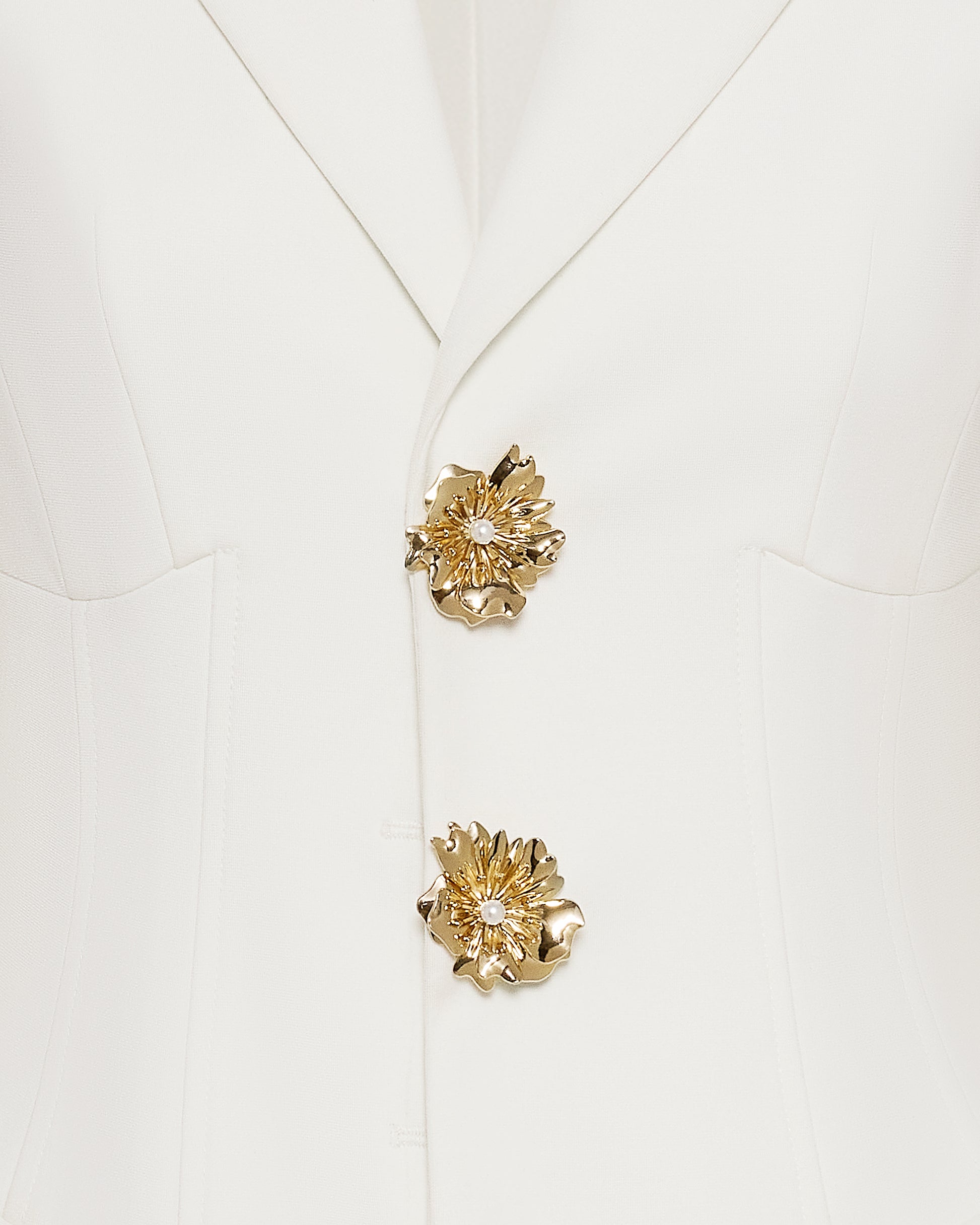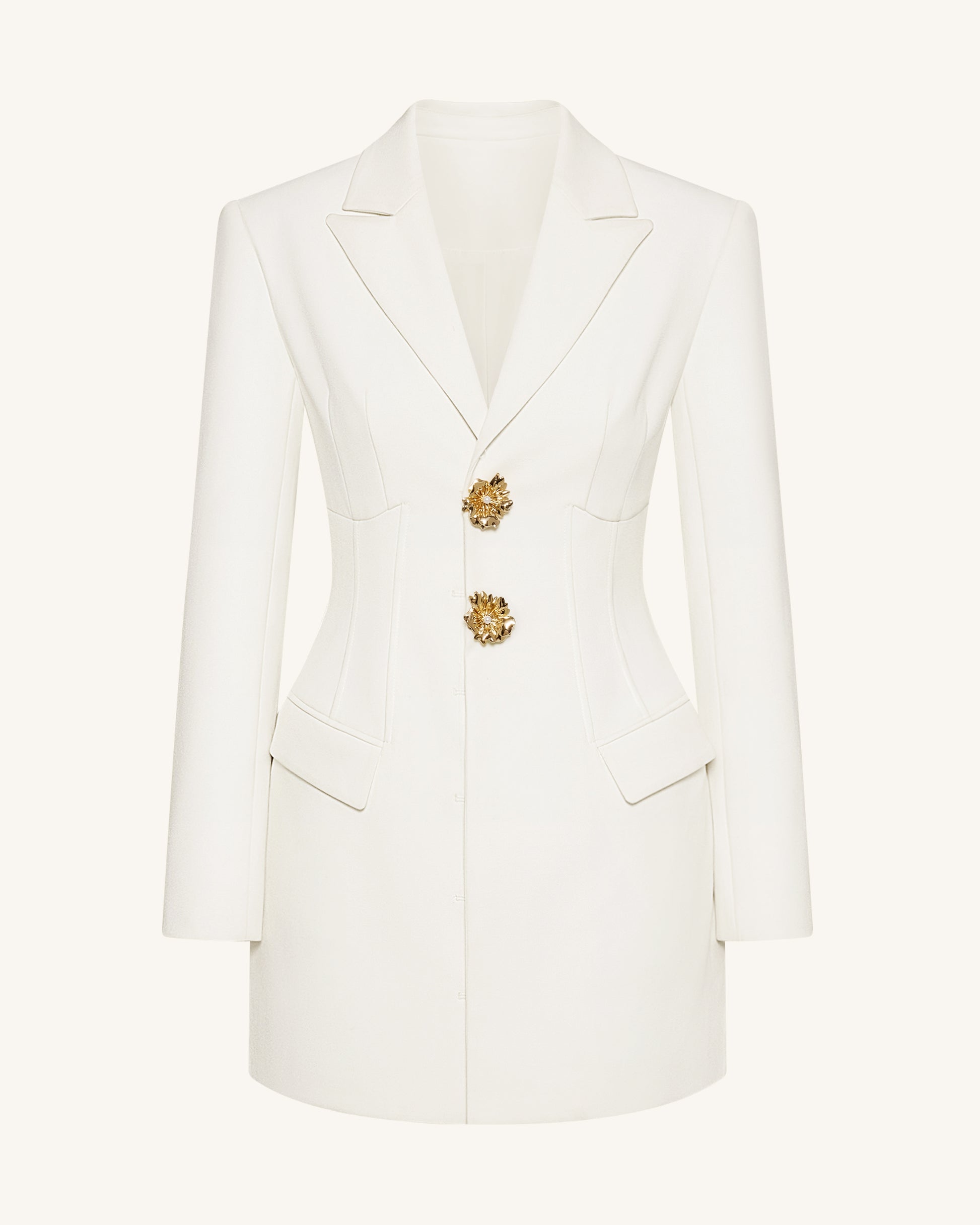 Gold Button Fitted Blazer Dress – White