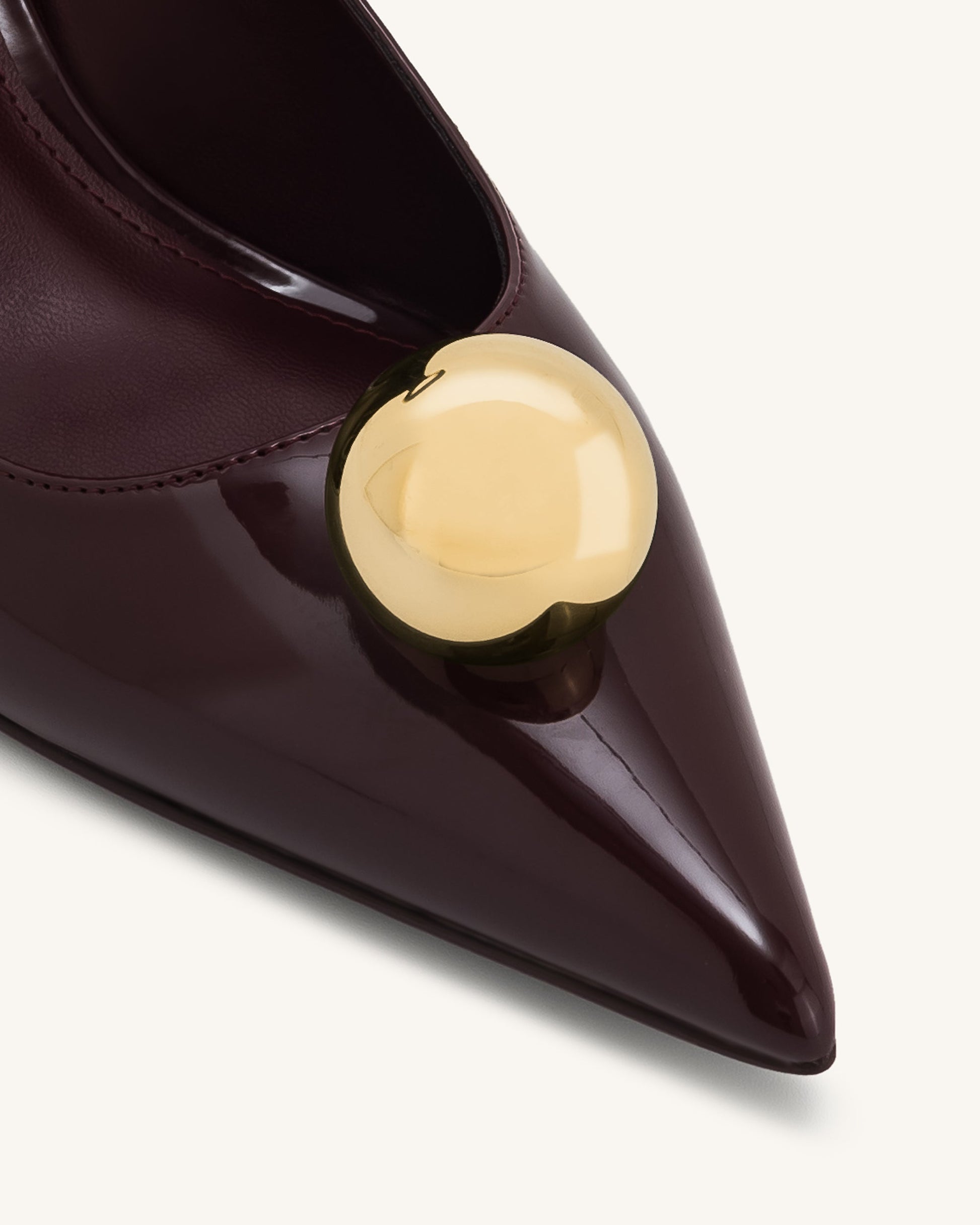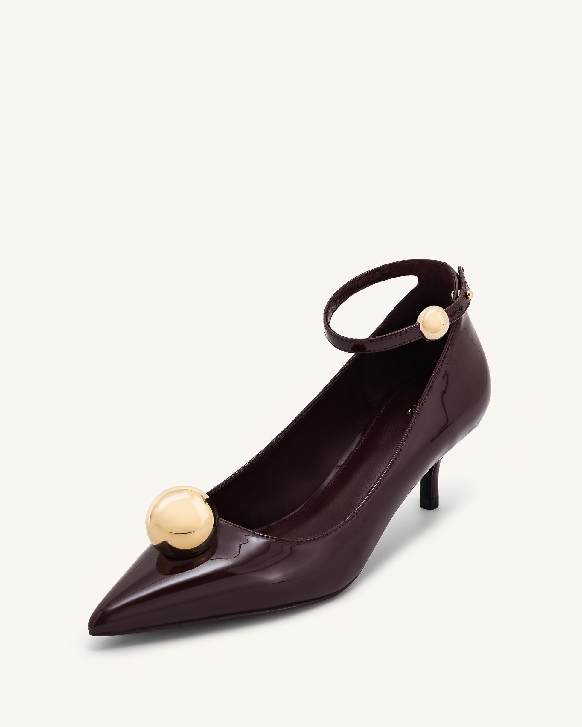 Jewel Buckle Kitten Heels Pumps - Claret Red