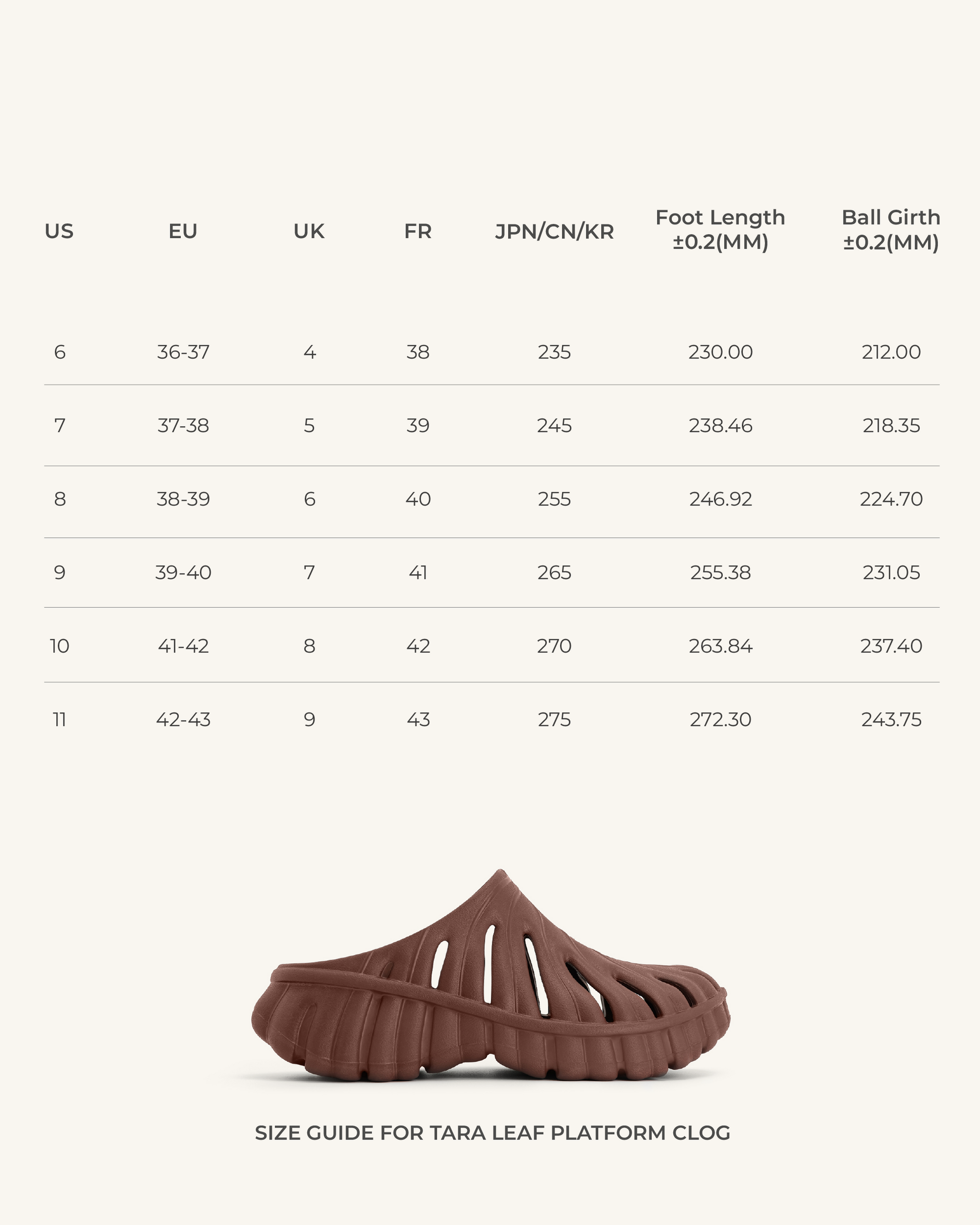 US | EU | UK | JPN/CN/KR | Foot Length±0.2 (CM) |