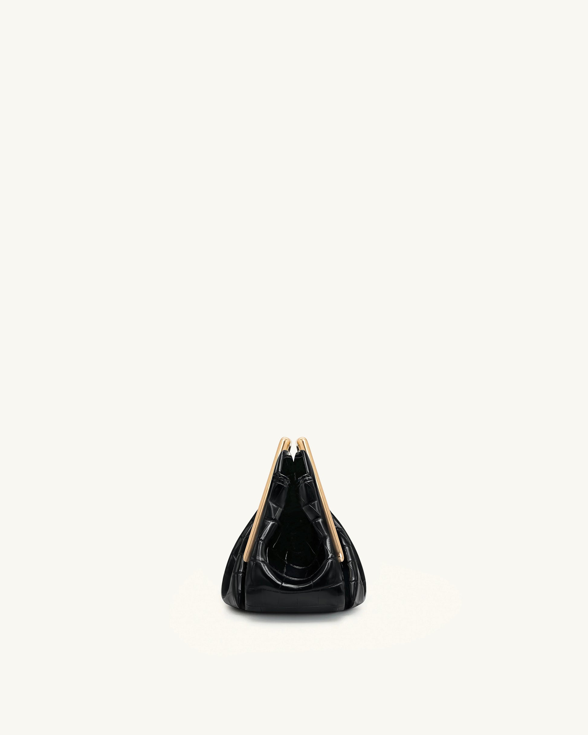 Lila Faux Croc-Effect Metal Frame Clutch - Black