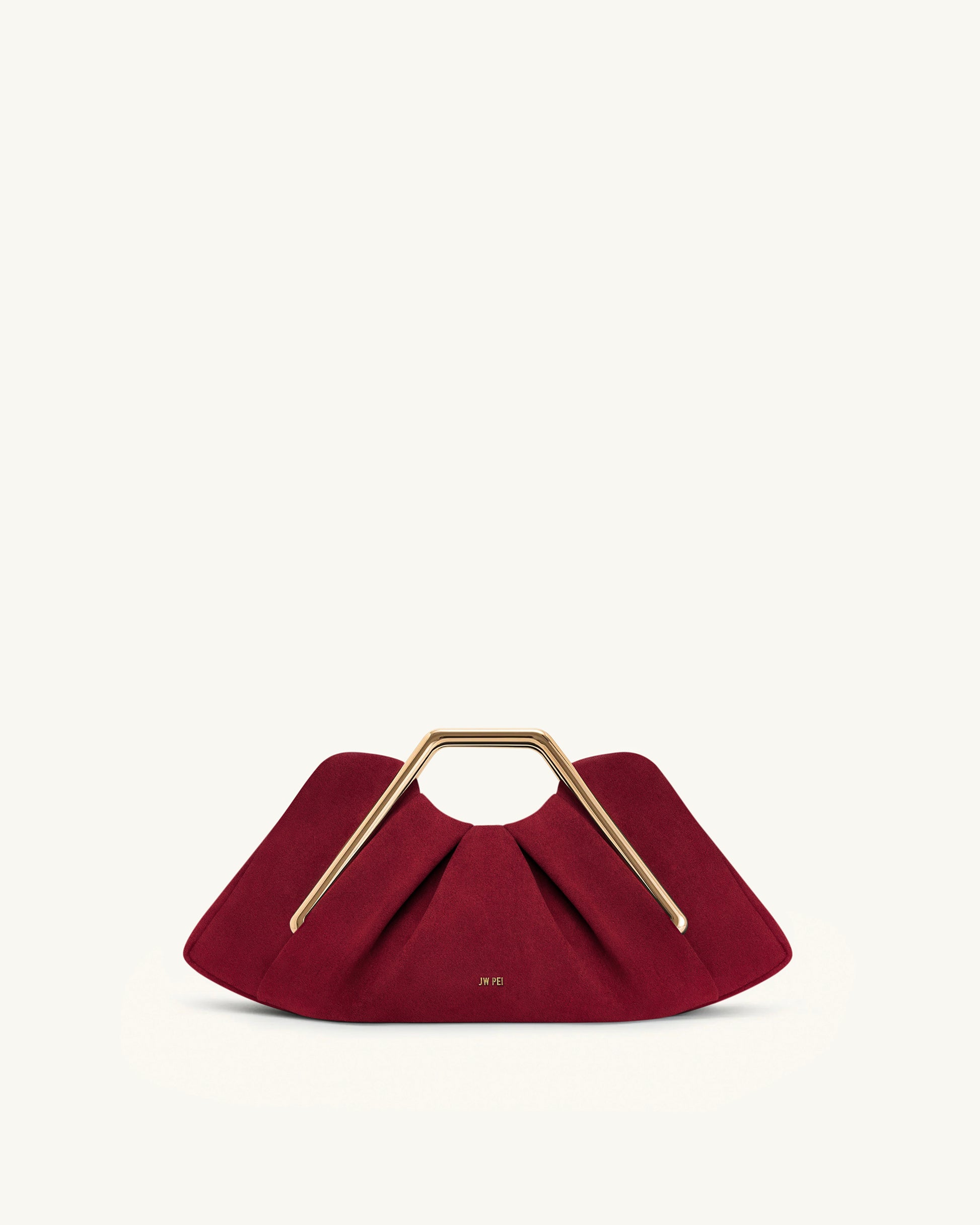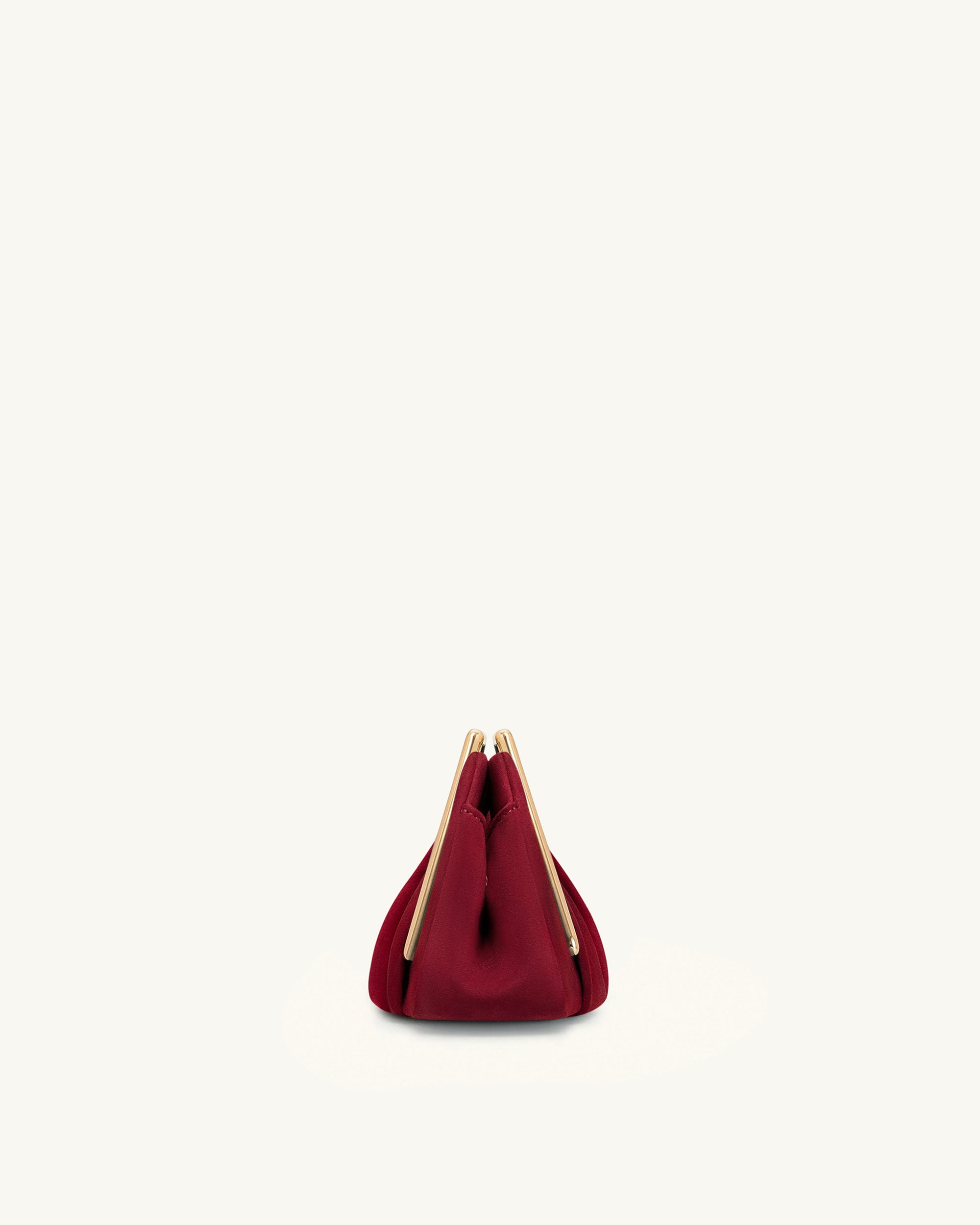 Lila Faux Suede Metal Frame Clutch - Red