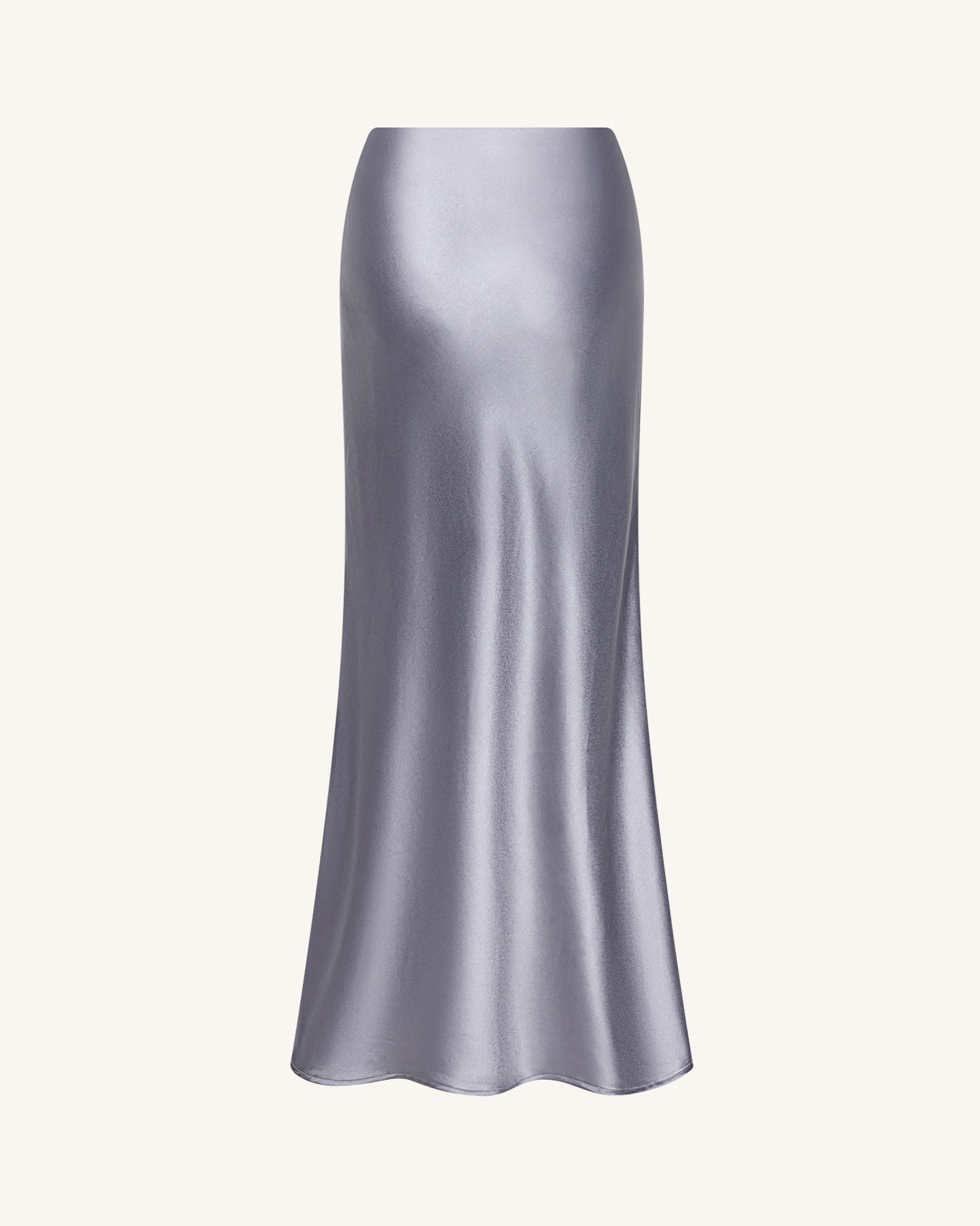 Liquid Satin Mermaid Maxi Skirt - Silver