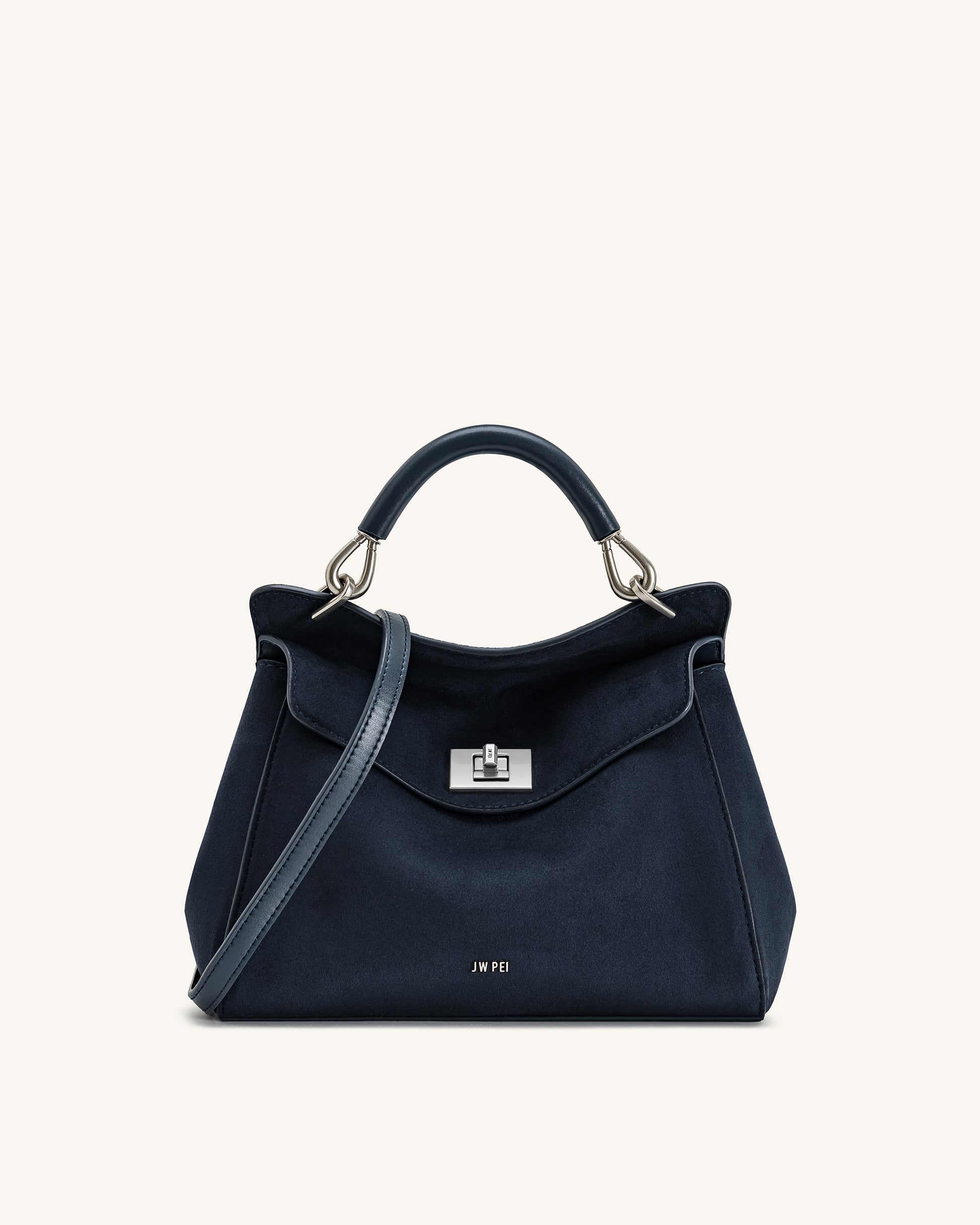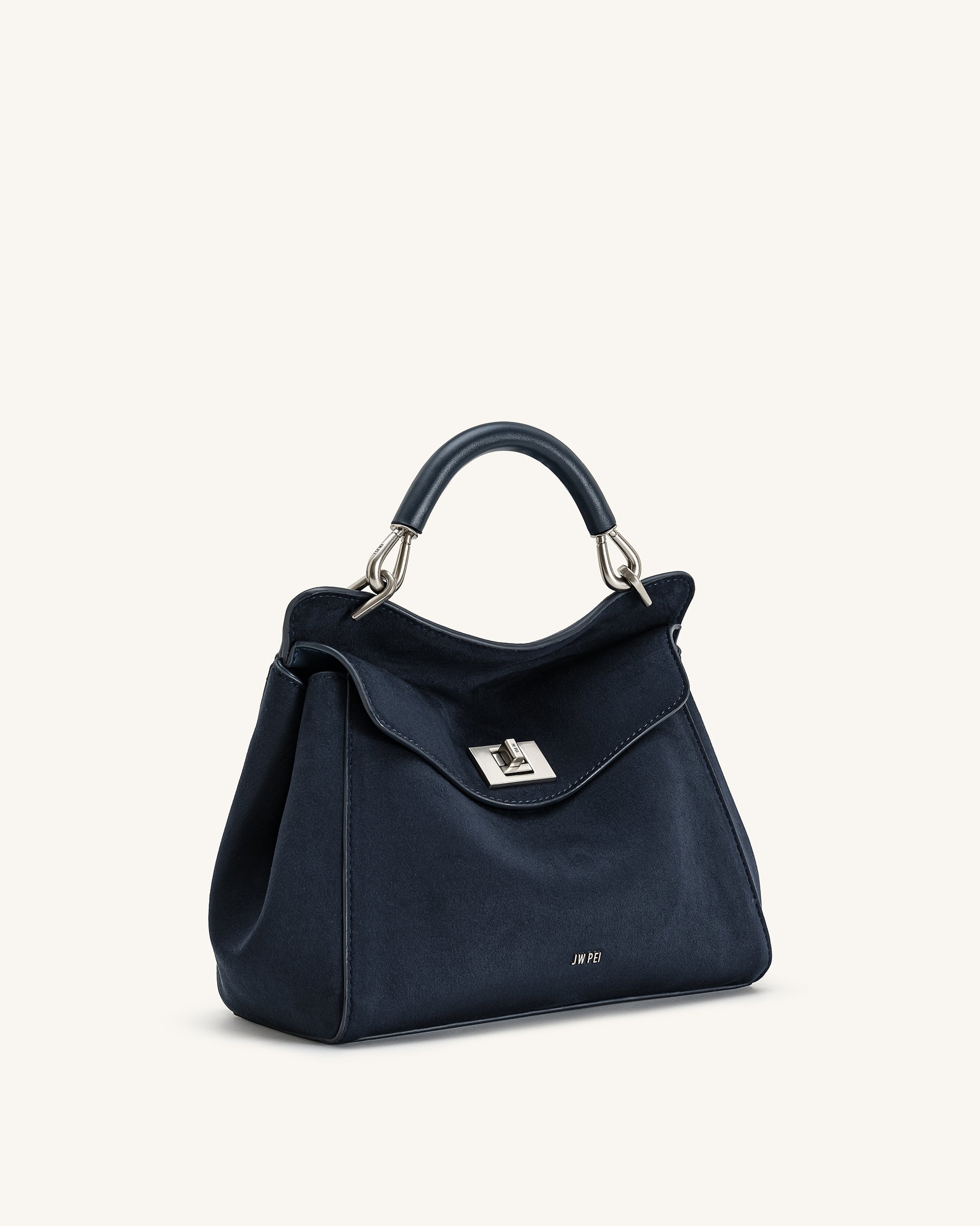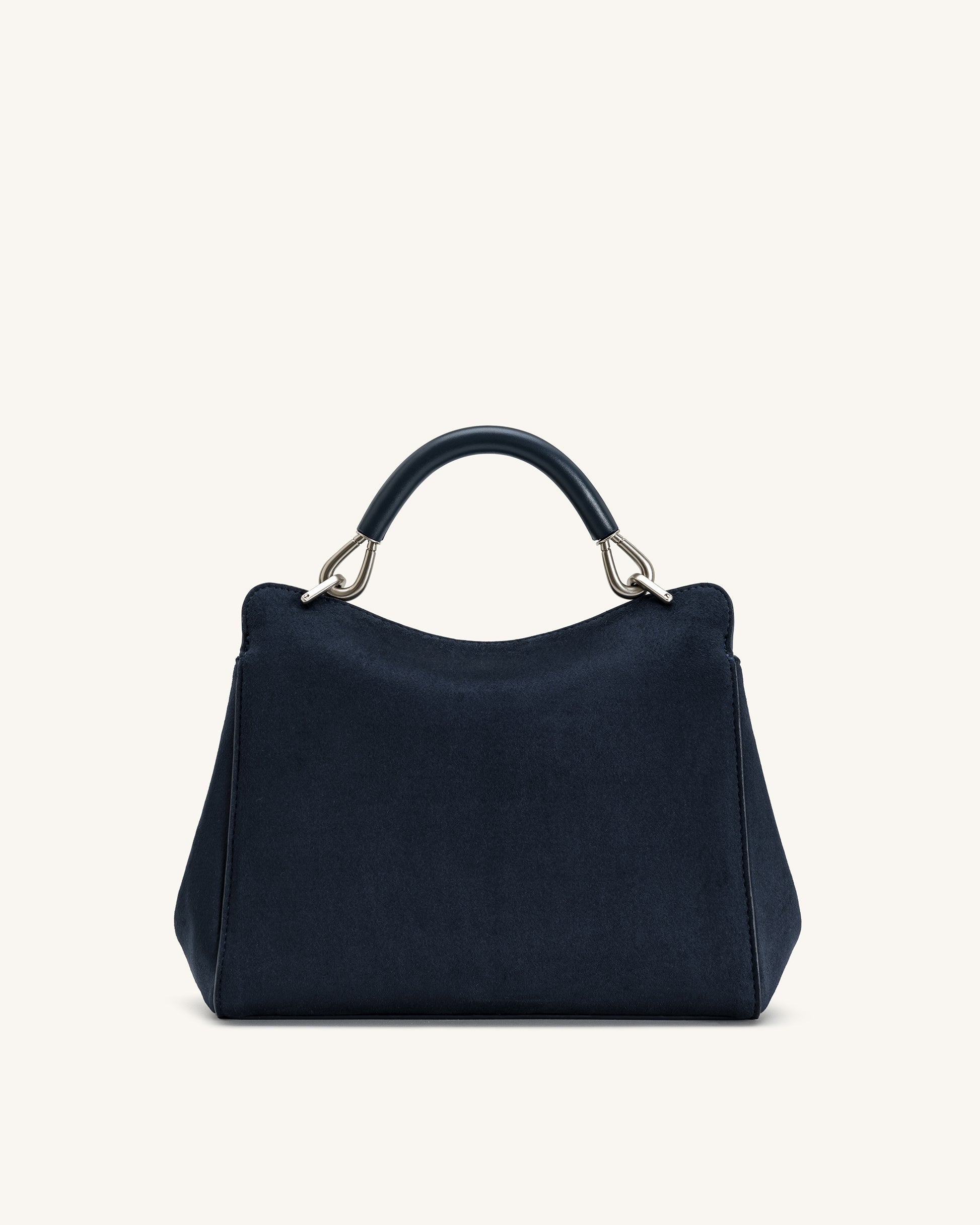 Lucia Classic Faux Suede Top Handle Bag - Navy Blue