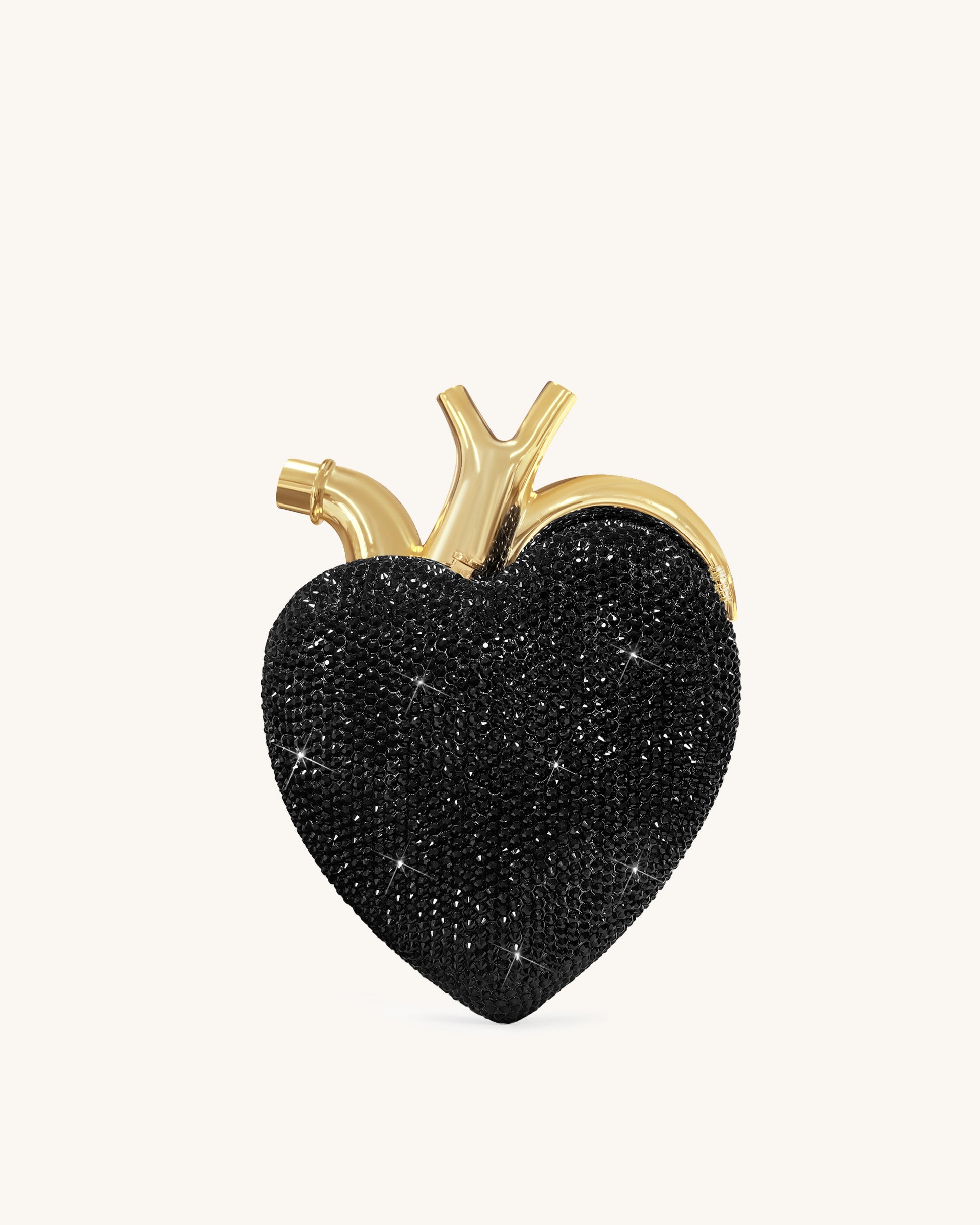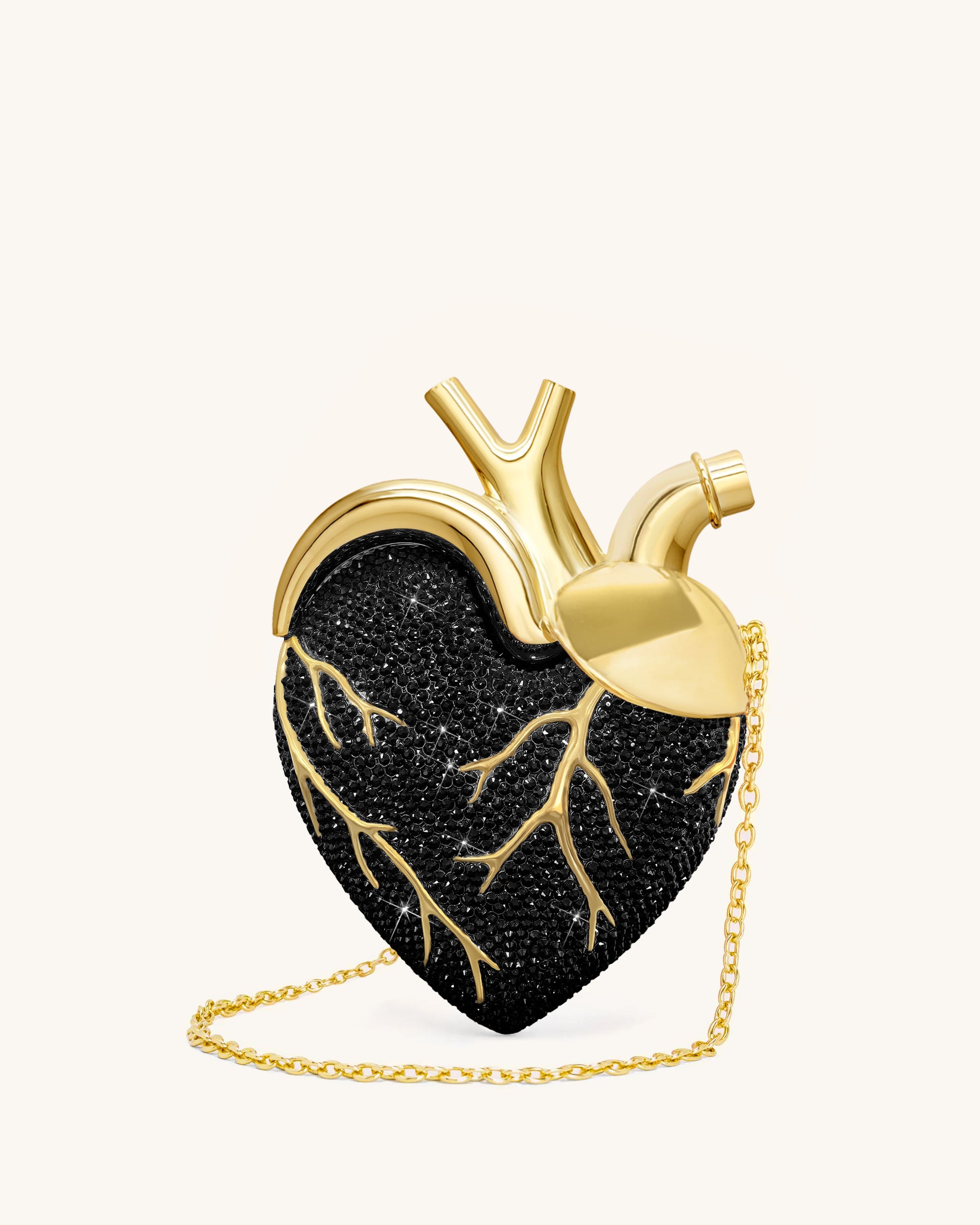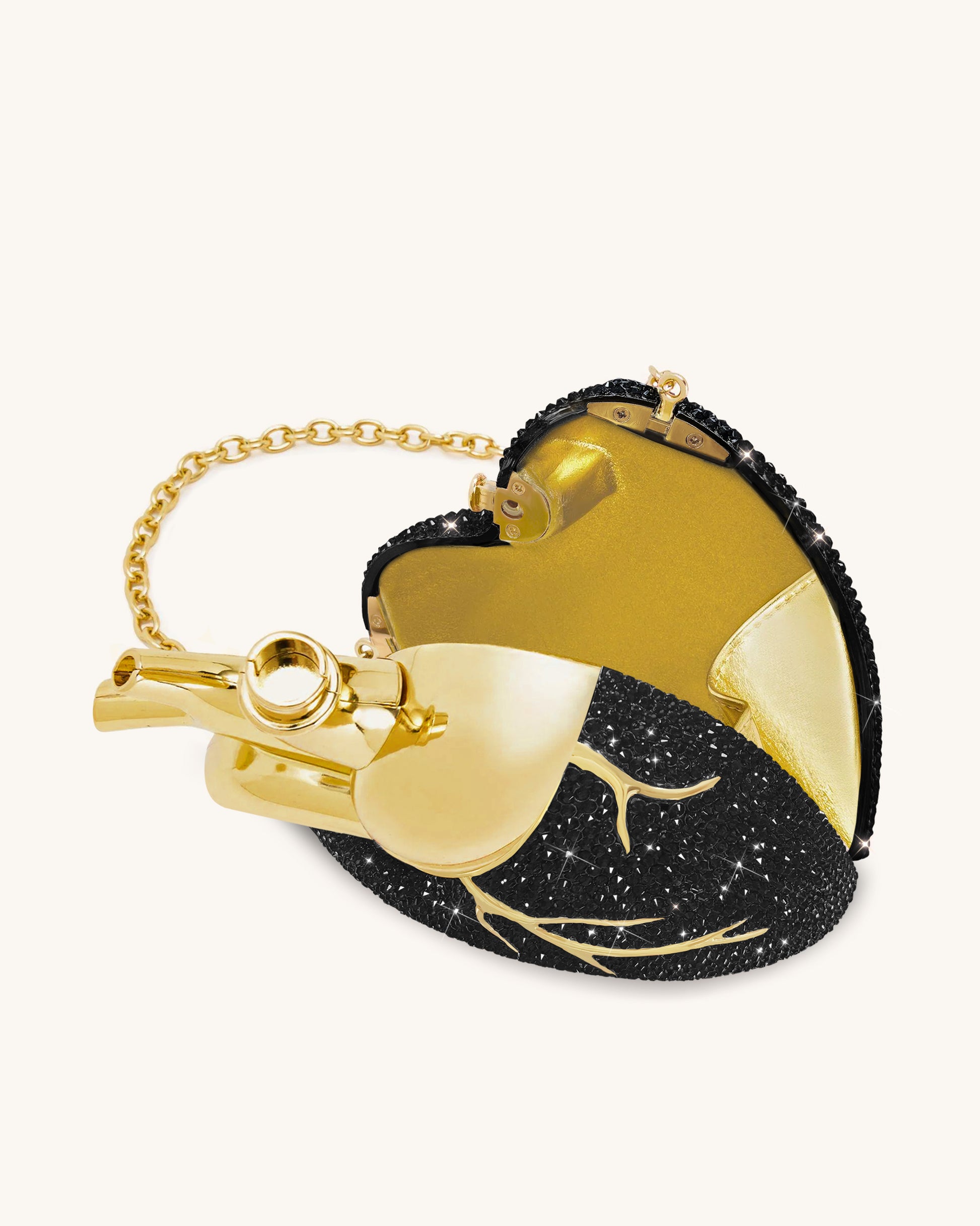 Maren Artificial Crystal Heart Shaped Bag - Black Gold