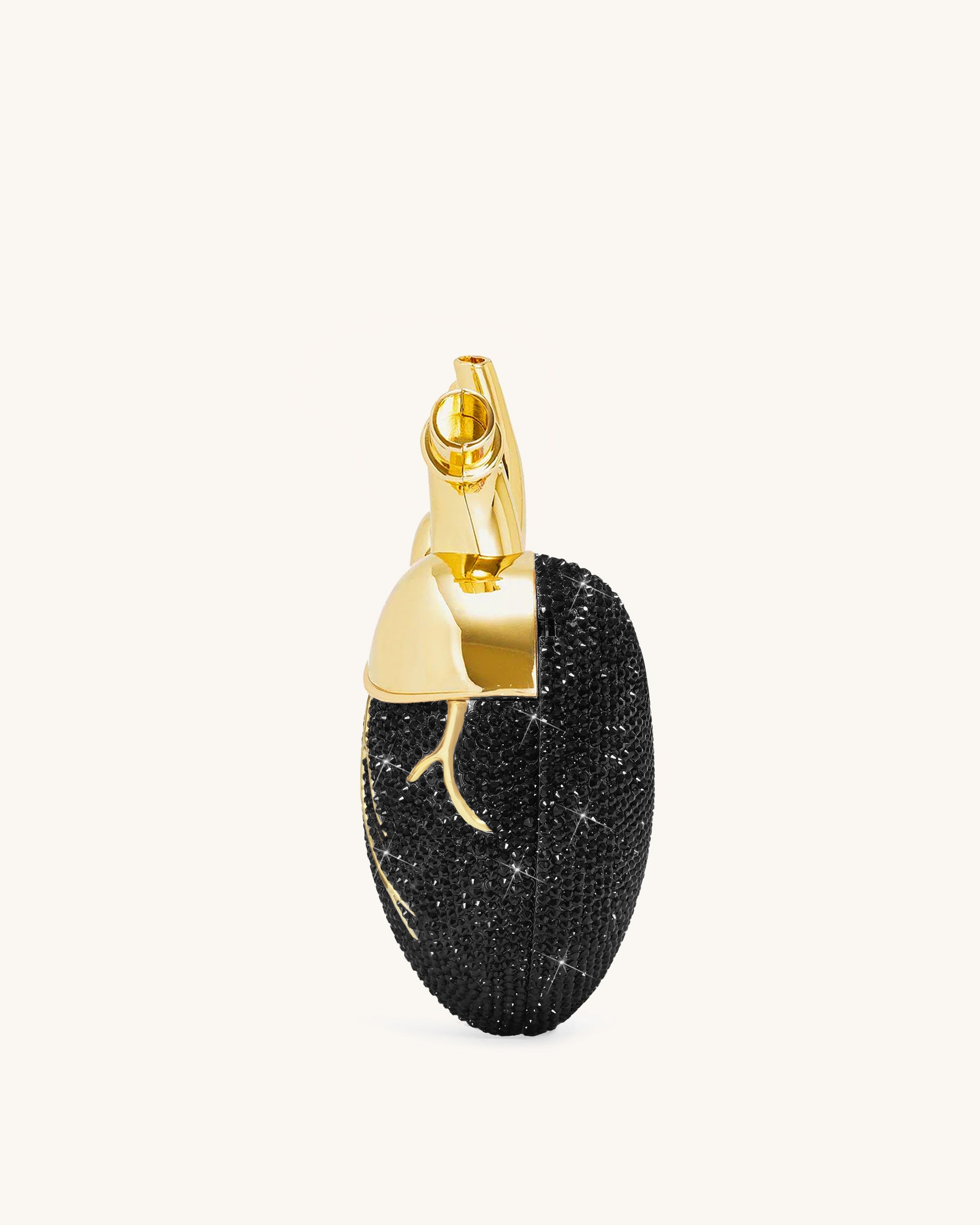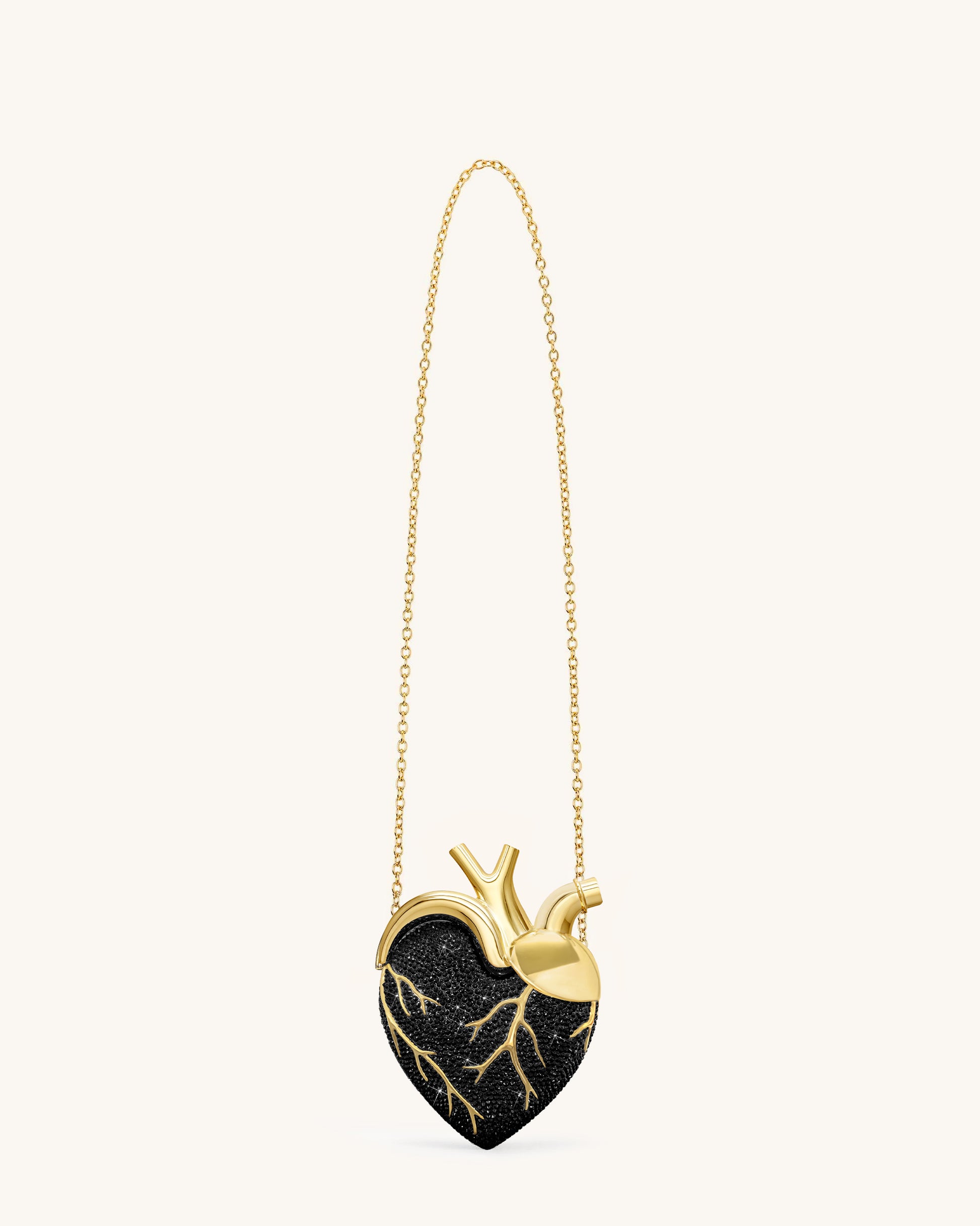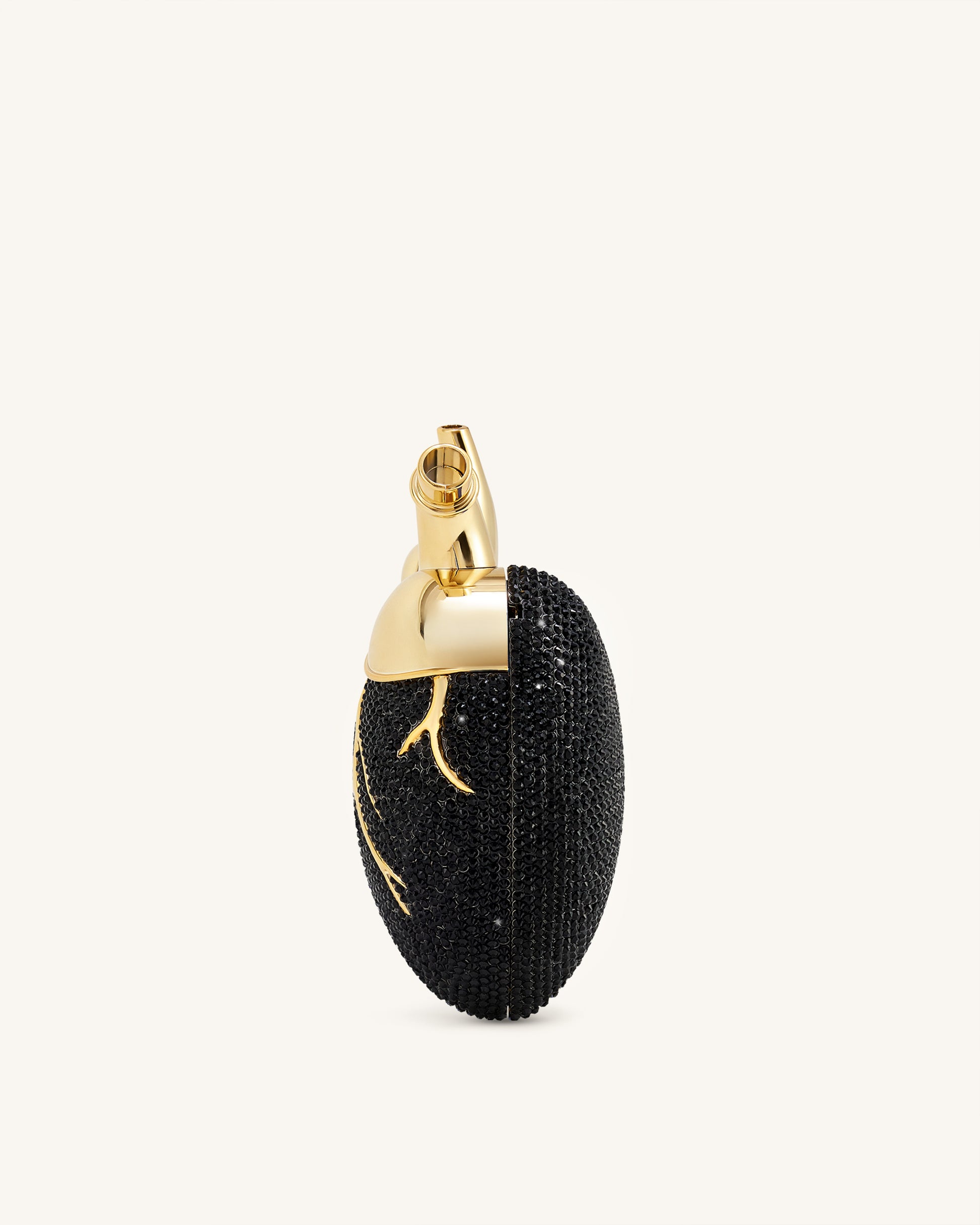 Maren Artificial Crystal Heart Shaped Bag - Black Gold