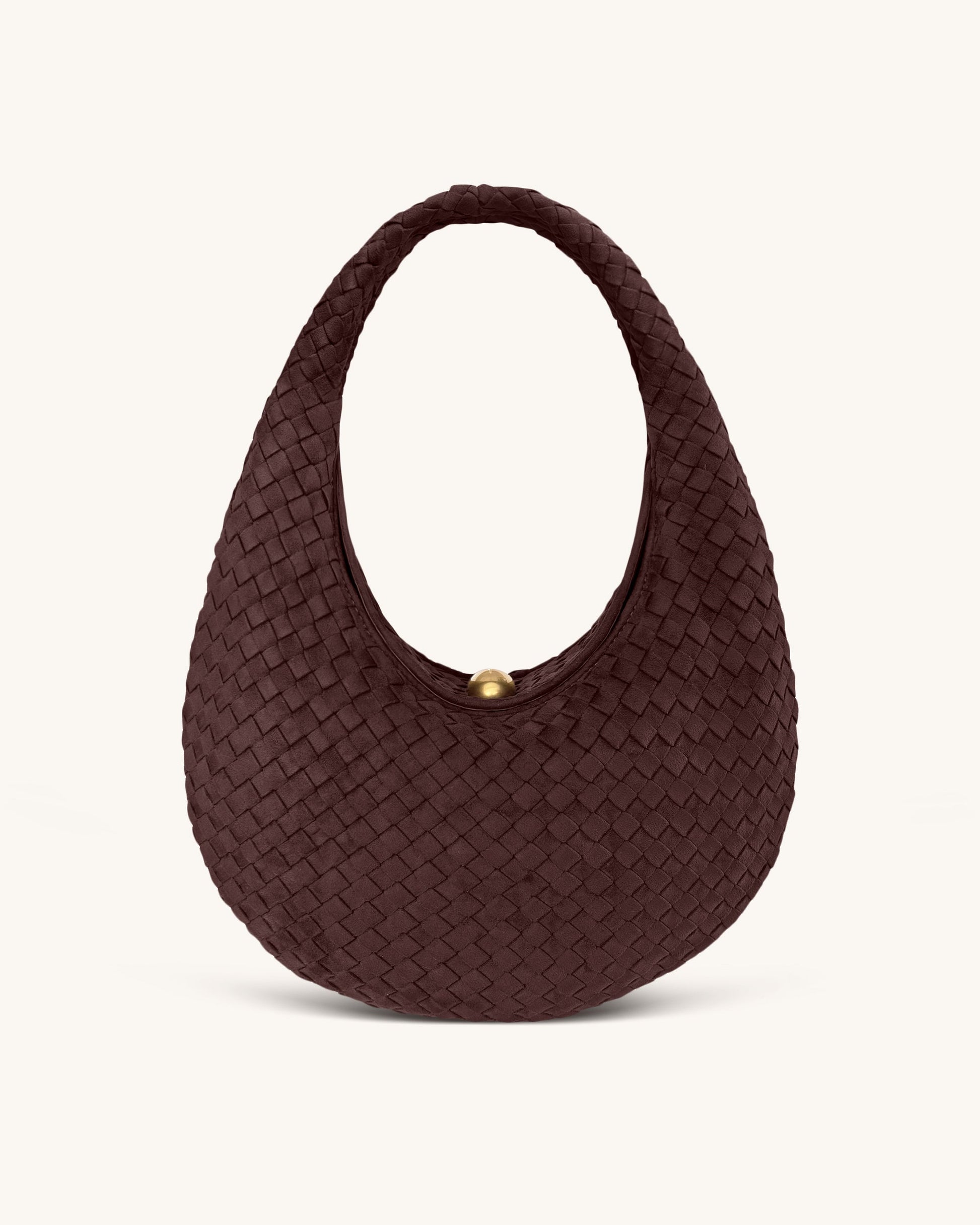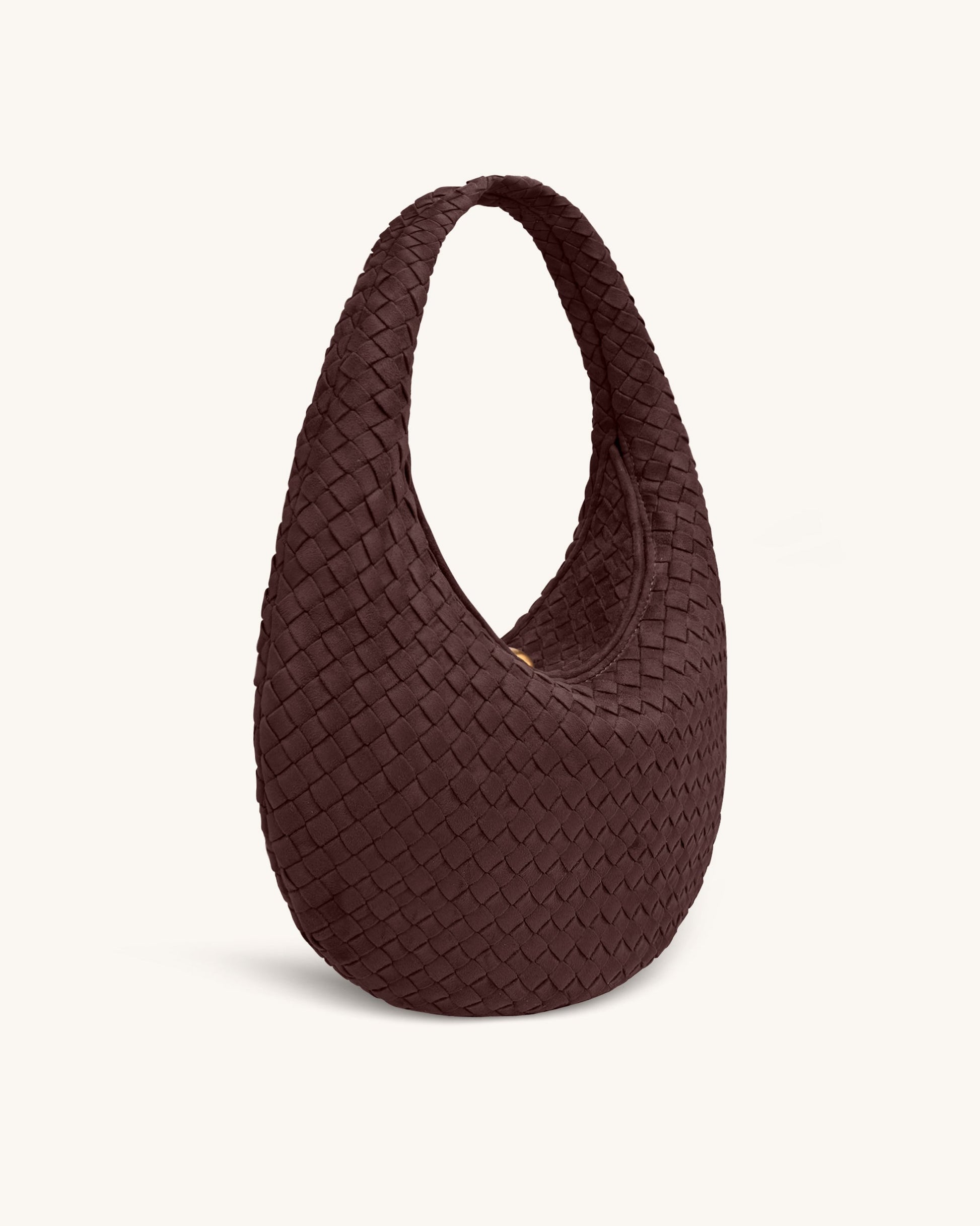 Nola Faux Suede Woven Hobo Shoulder Bag - Dark Mocha