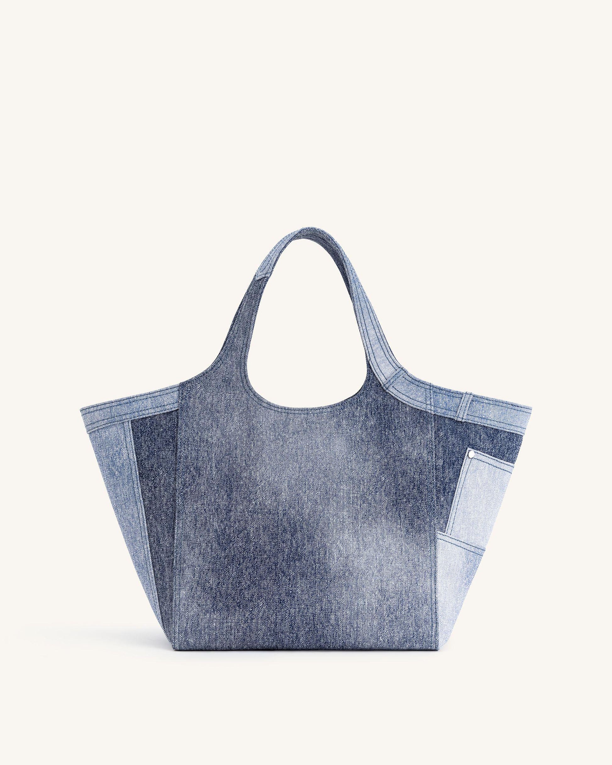 Eliana Denim Embossed Tote Bag - Blue