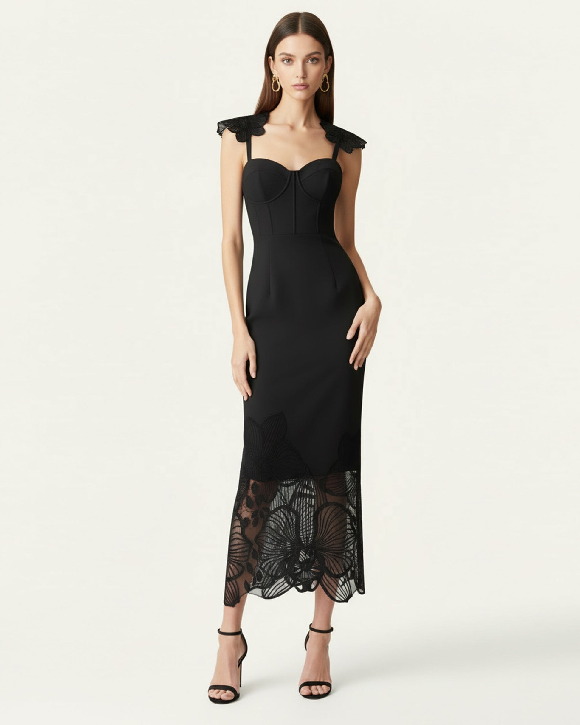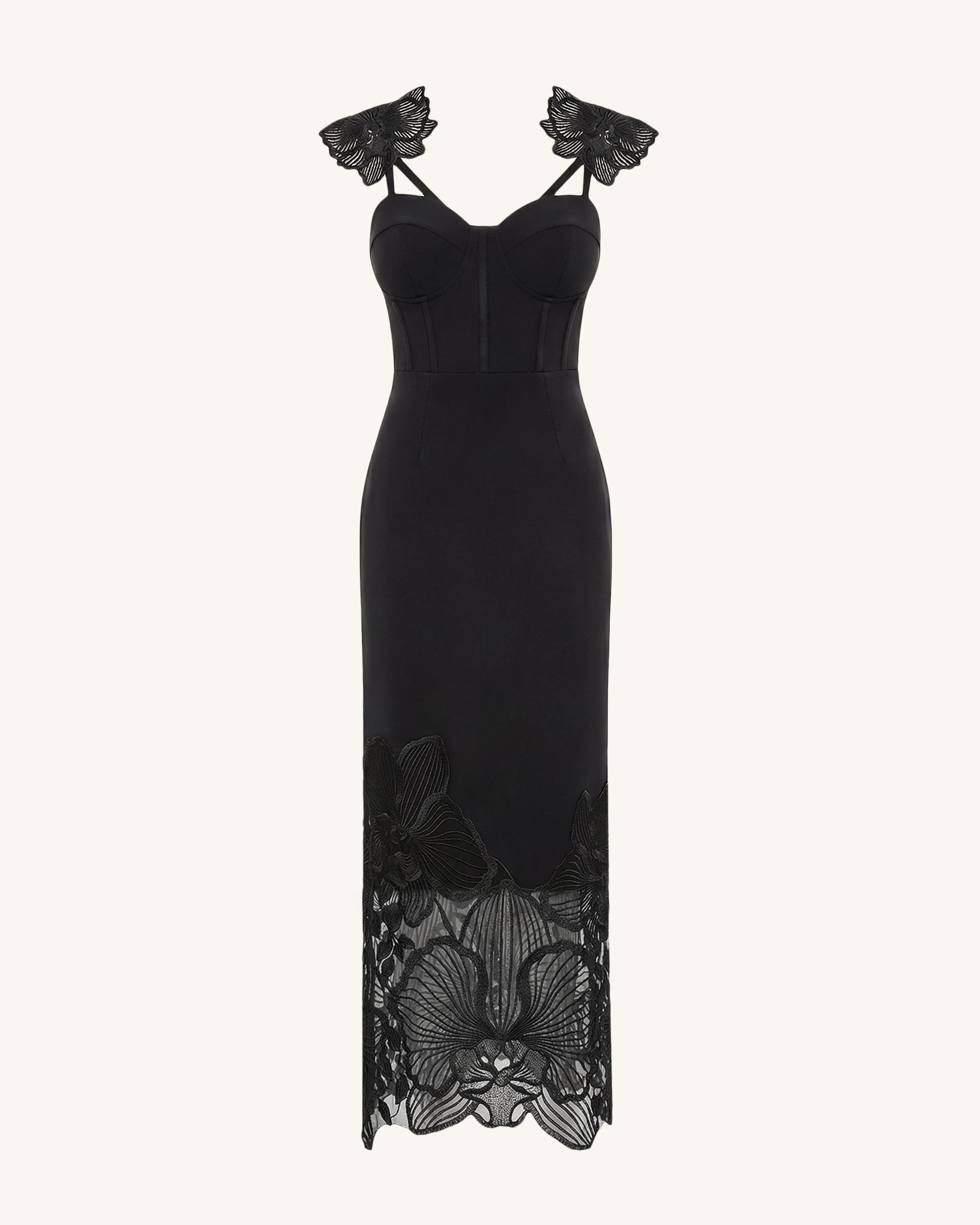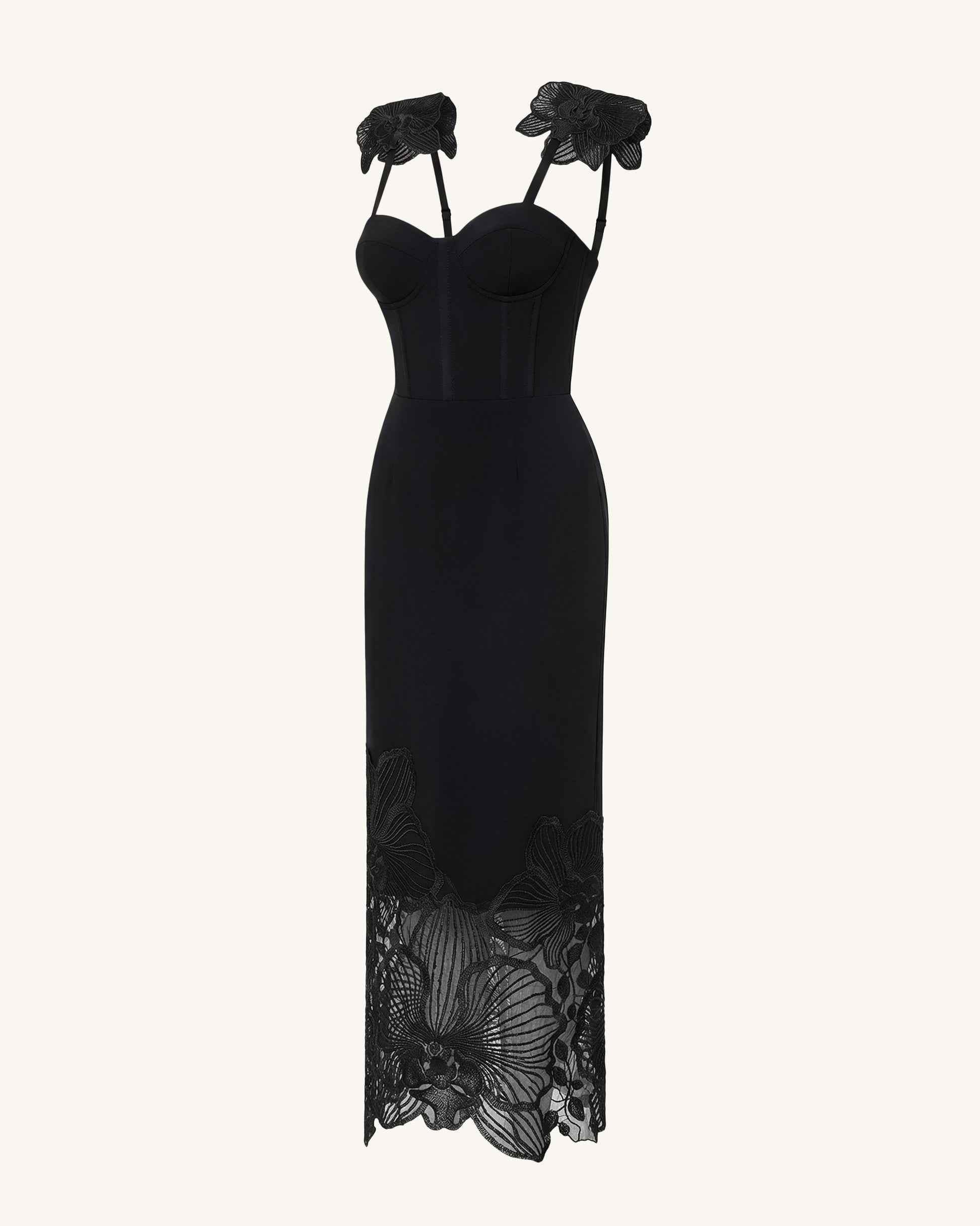 Orchid Embroidered Corset Dress - Black