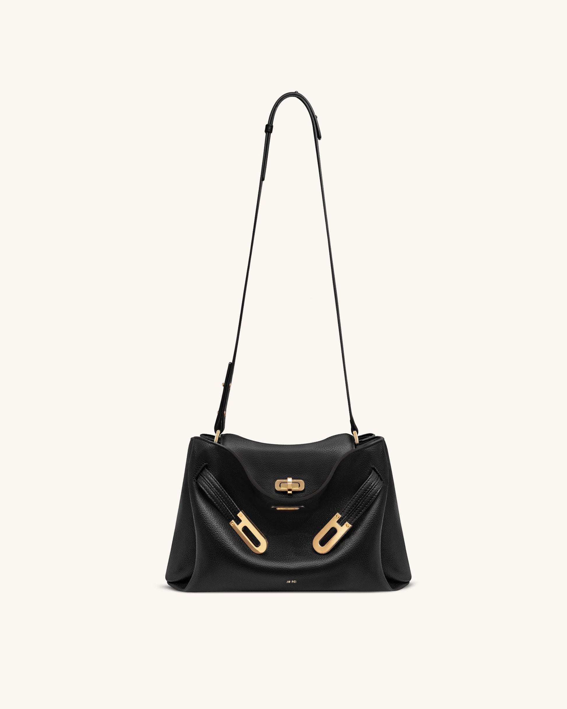 Rhea Pebbled Double Buckle Shoulder Bag - Black