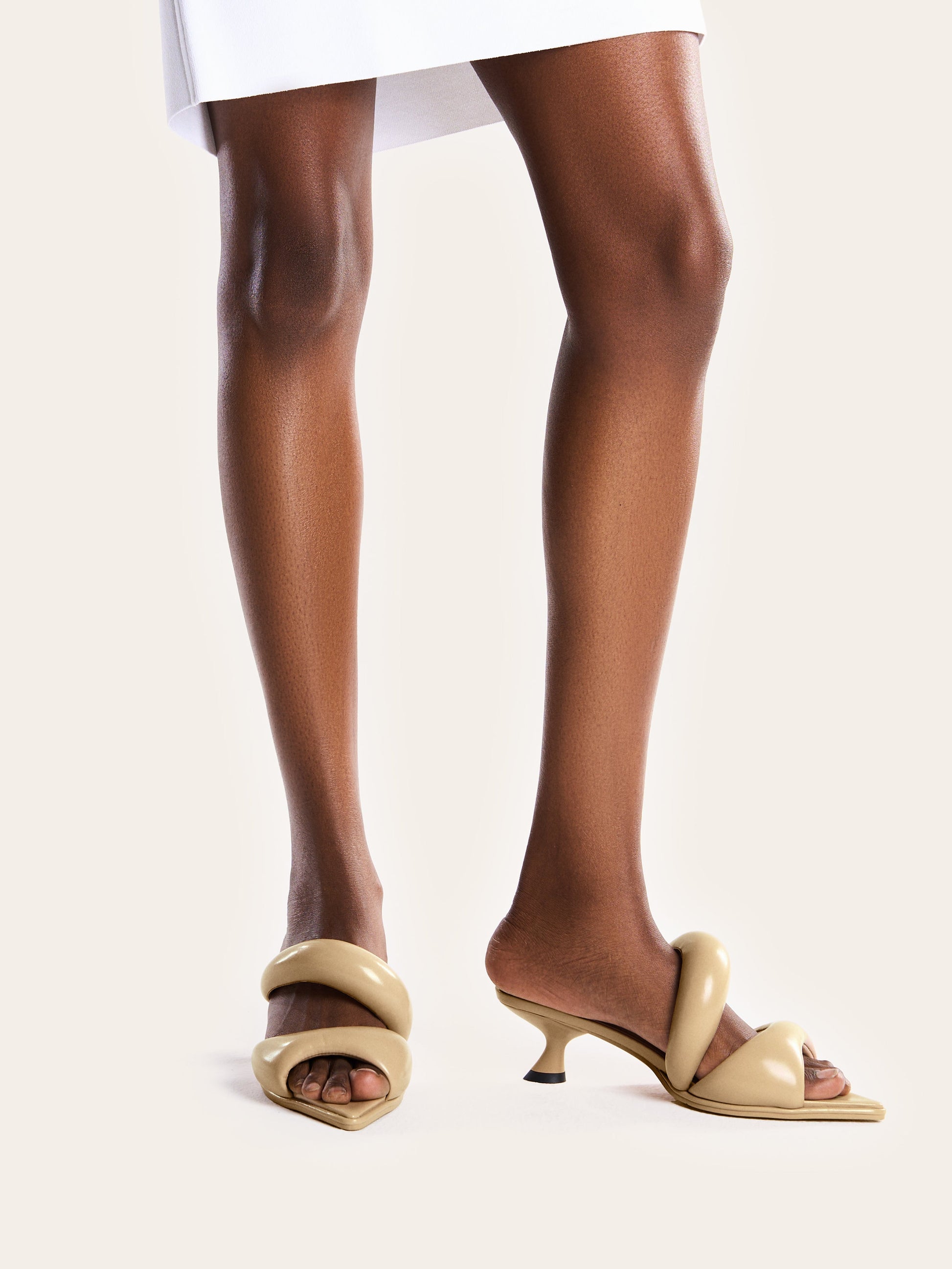 We typically advise customers to size up from their regular shoe size when purchasing our HELENA PIERCED MULES.