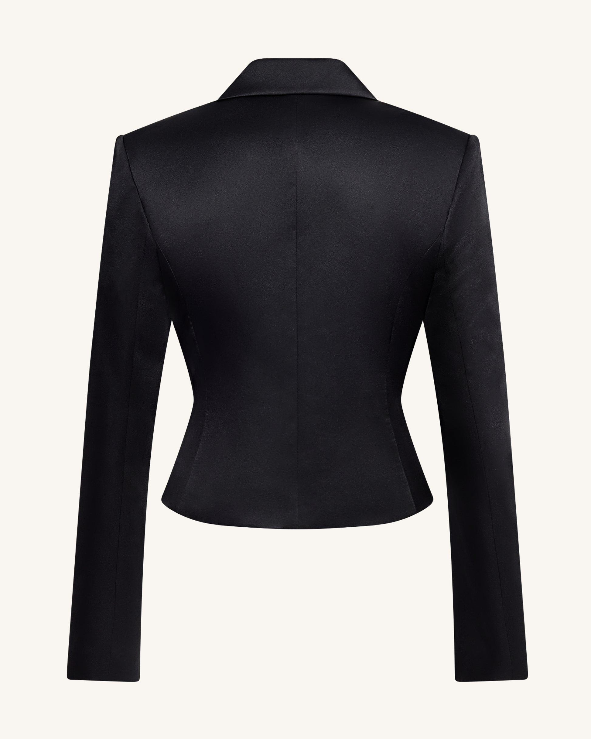 Satin Sculpted Waist Cropped Blazer - Black
