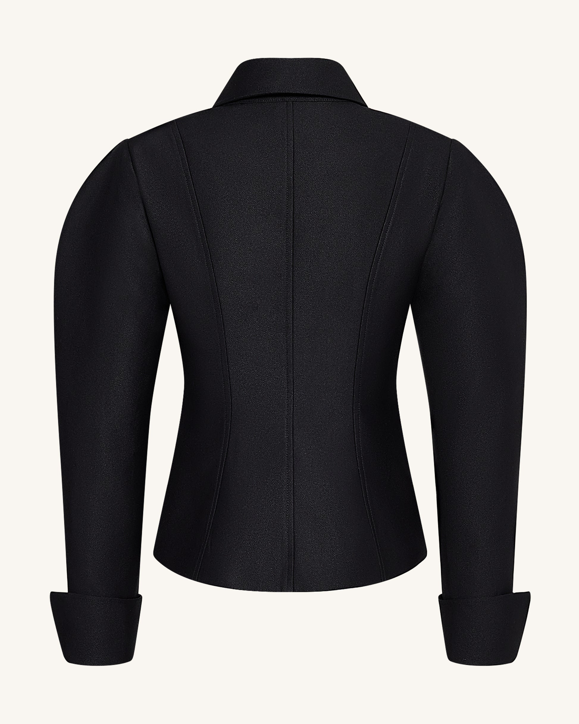 Scalloped Placket Leg of Mutton Blazer - Black