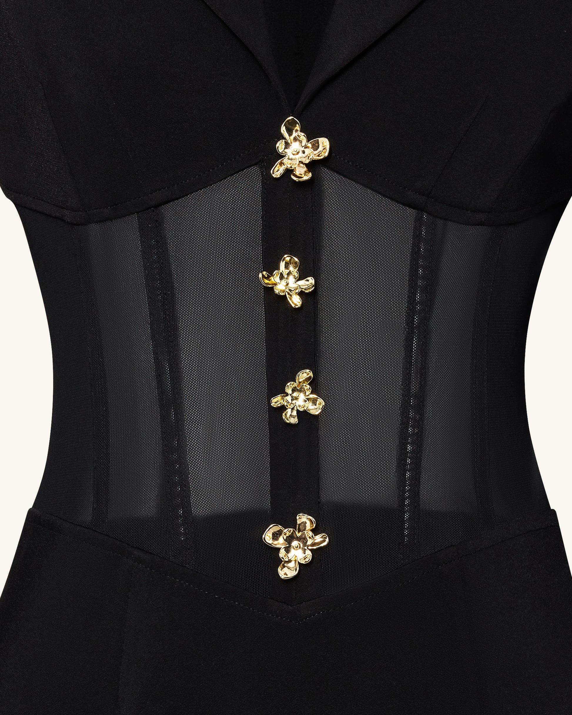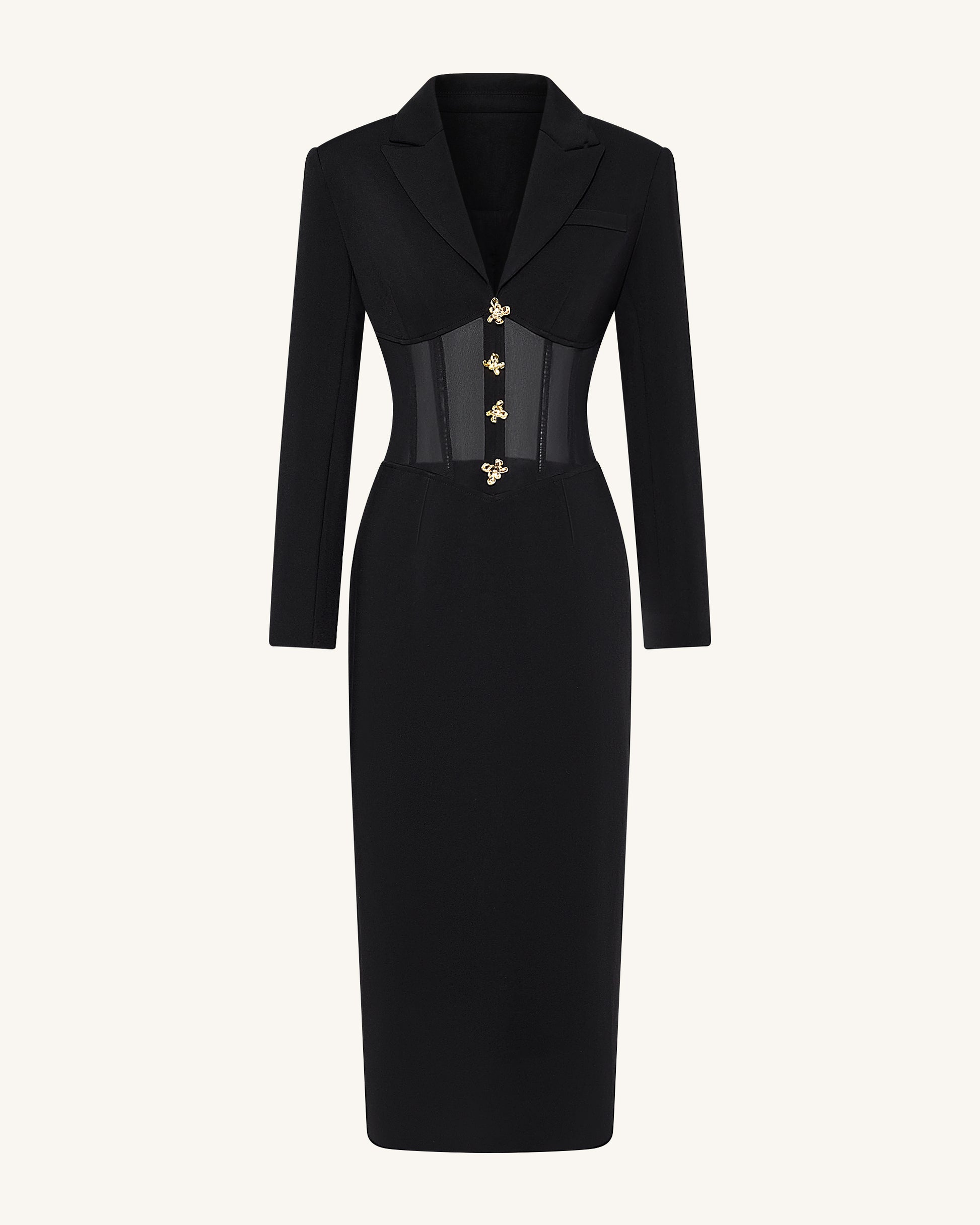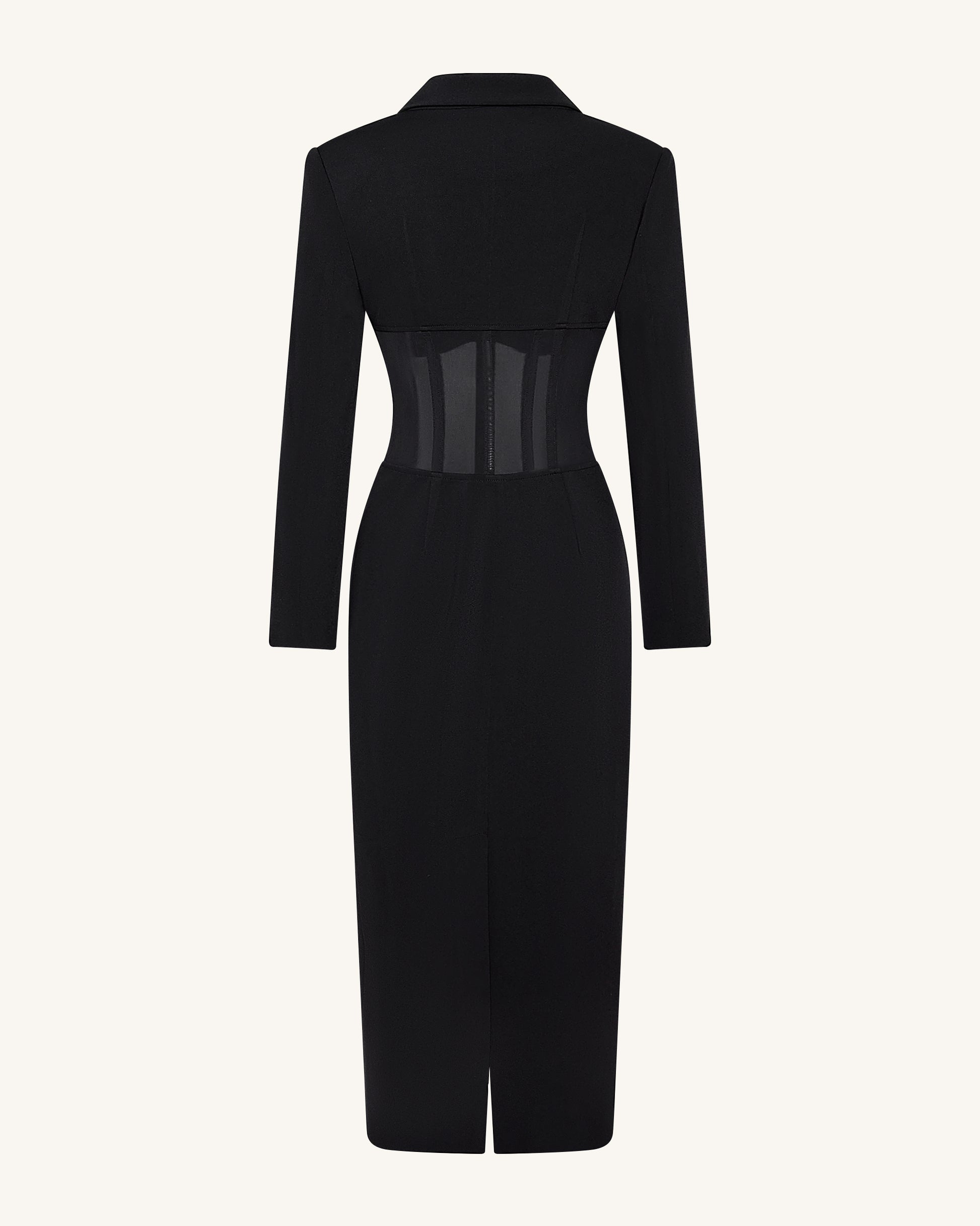 Sheer Boned Corset Waist Blazer Maxi Dress - Black
