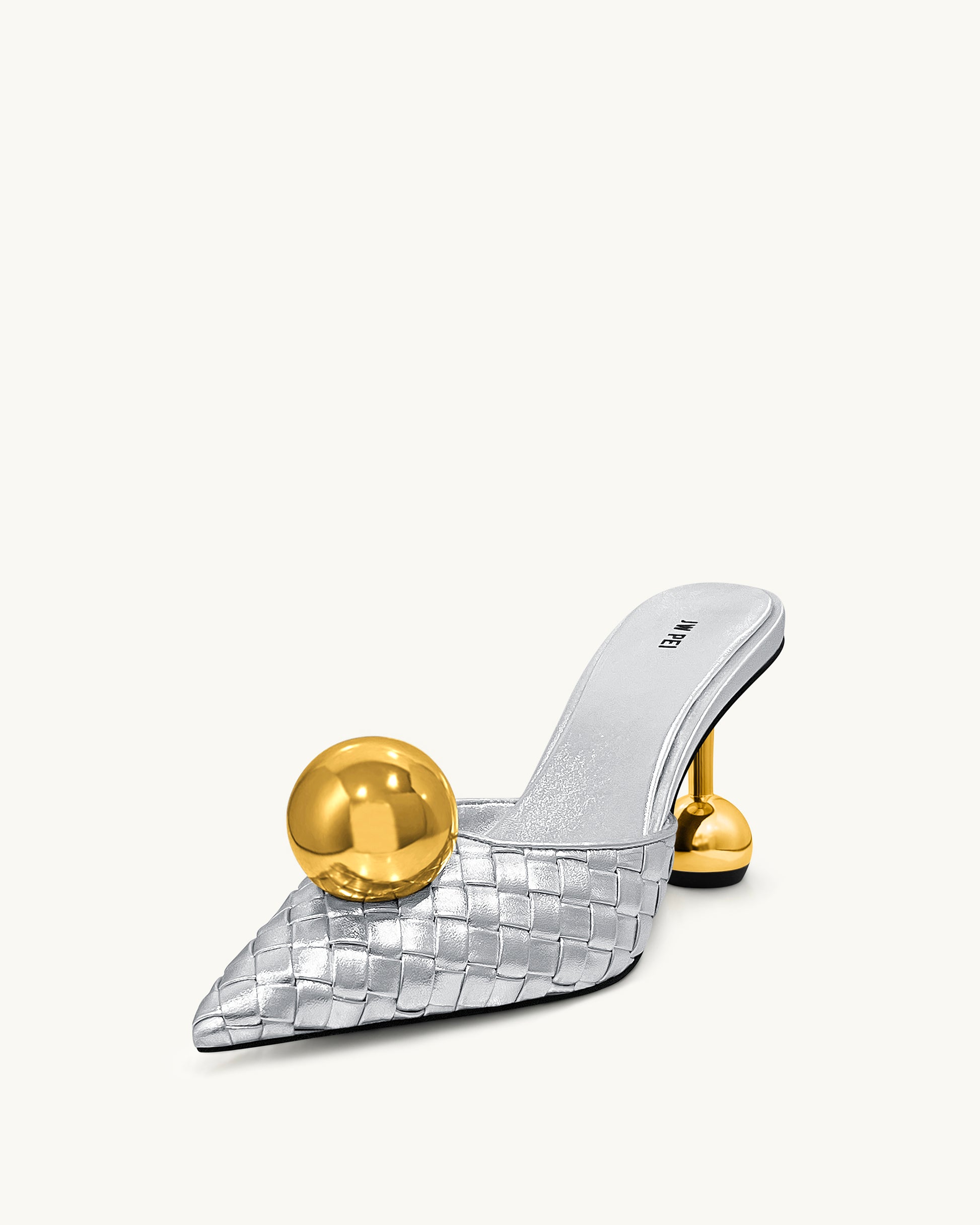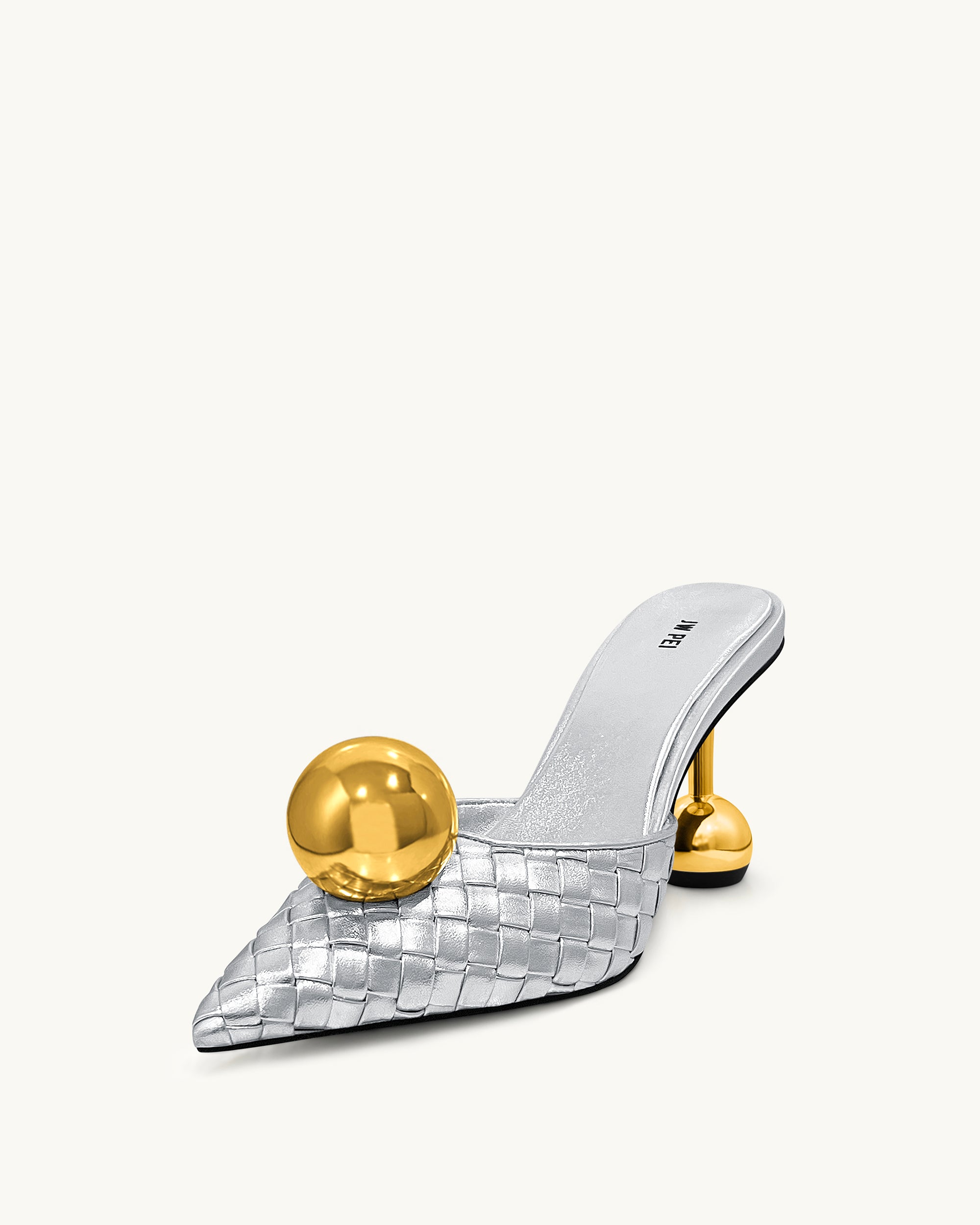 Sofia Woven Sphere Heel Mules - Silver & Gold