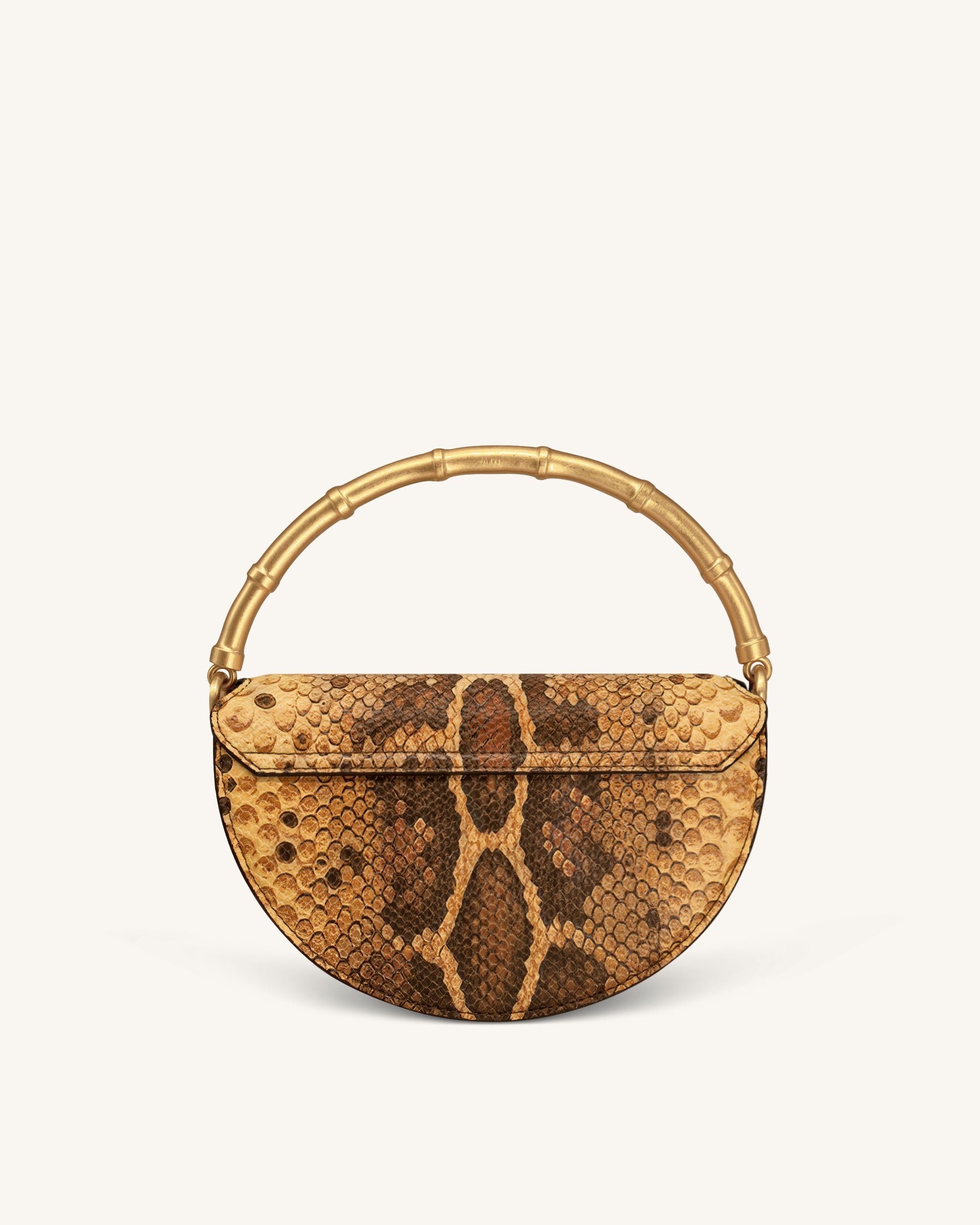 Sylvie Snake Print Half-Moon Top Handle Bag - Yellowish Brown
