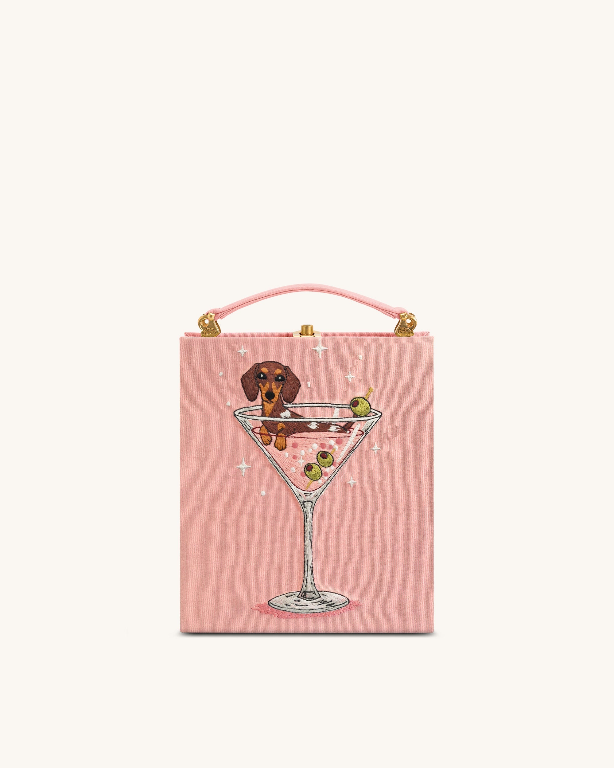 Taya Wine Glass Puppy Pattern Book Shape Clutch Bag - Pink