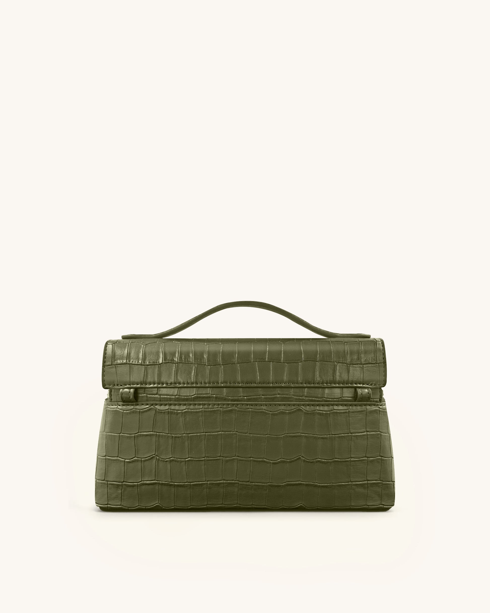 Thea Croc-Embossed Top Handle Bag - Olive Green