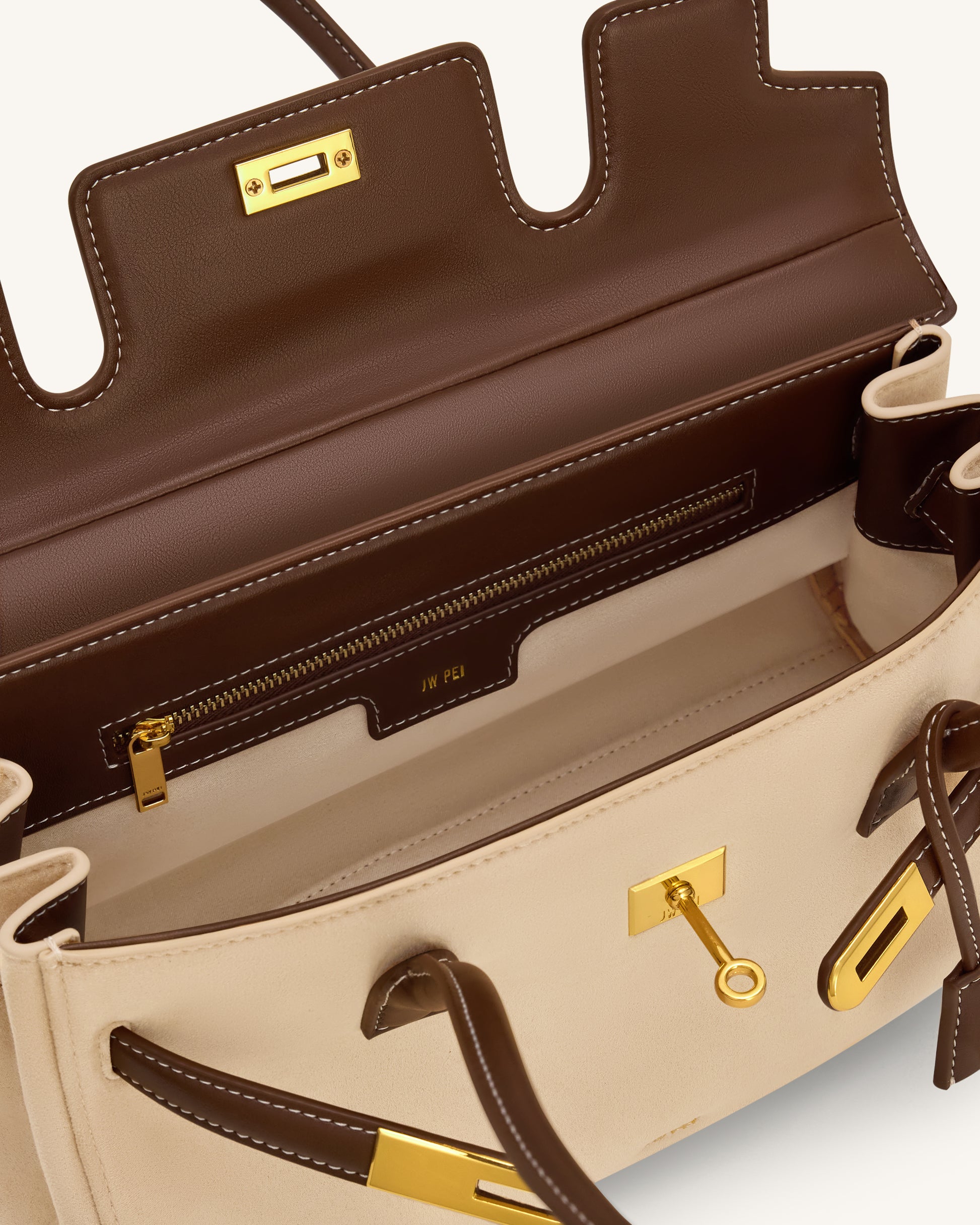 Elegant structured handbag with a tactile suede finish and smooth trim. Features a gold-tone hardware accent. Sturdy double handles, ideal for daily or professional use.