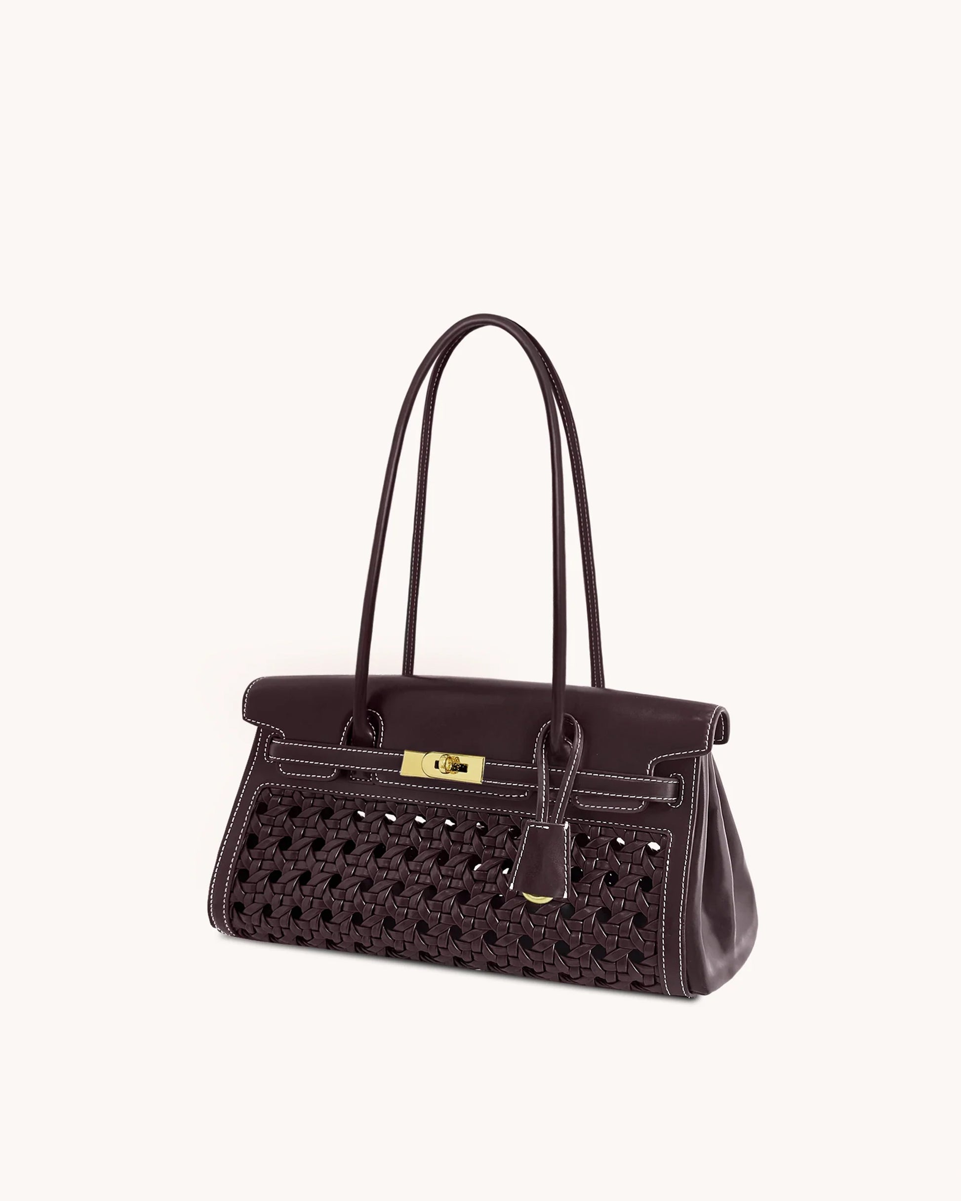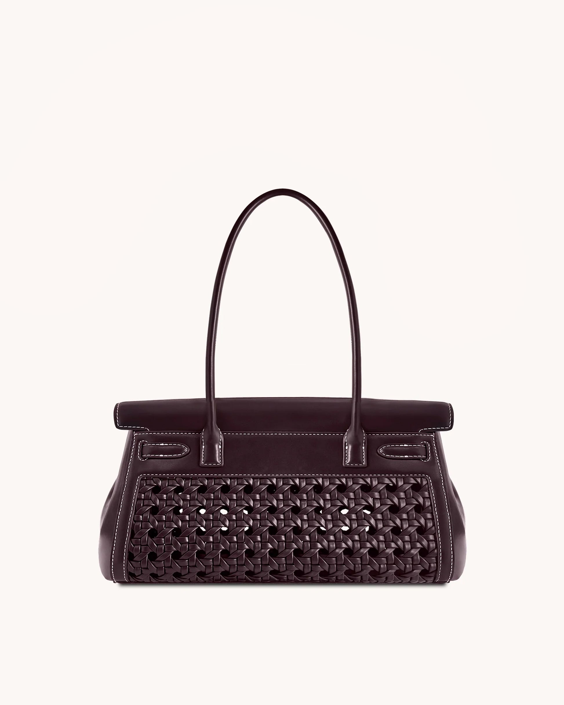 Elegant top handle bag with woven front and gold hardware. Spacious, structured, and stylish, perfect for daily or office use. Smooth texture and sophisticated look make it versatile and modern.
